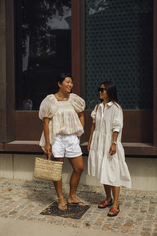 С 9 августа улицы столицы вновь заполонили очень модные девушки как в добрые докарантинные времена.Как известно, скандинавские модницы давно заслужили звание трендсеттеров. Поэтому хроники стритстайла из Дании заслуживают особенного внимания. Девушки успешно маневрируют между функциональным минимализмом и очень яркими, порой даже экстравагантными, образами. Еще они славятся умением сочетать яркие и пастельные оттенки, не боясь смелых комбинаций. Эта Неделя моды не стала исключением. Кто-то предпочел "белый верх, черный низ", а кто-то миксует тай-дай с золотом, боксерские шорты с туфлями на платформе, а строгие платья с вьетнамками. Последние особенно любимы местными фэшониста. Еще один тренд - корсеты, топы-бьюстье в бельевом стиле наглядно советуют носить с широкими брюками.