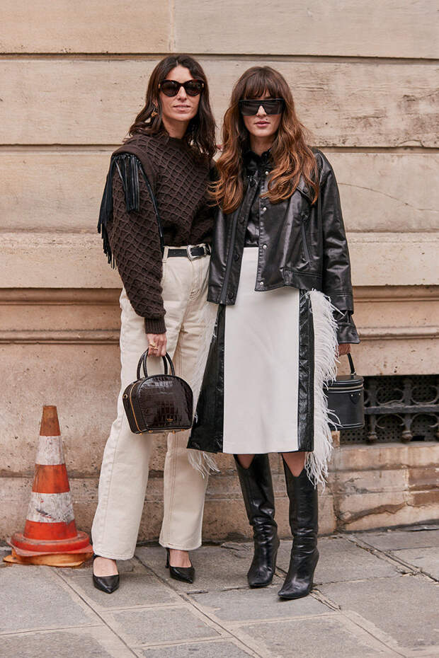А вот аксессуары лучше выбирать из других материалов: с тотал денимом будут отлично ладить сумки из кожи и замши с цепочками и бахромой.