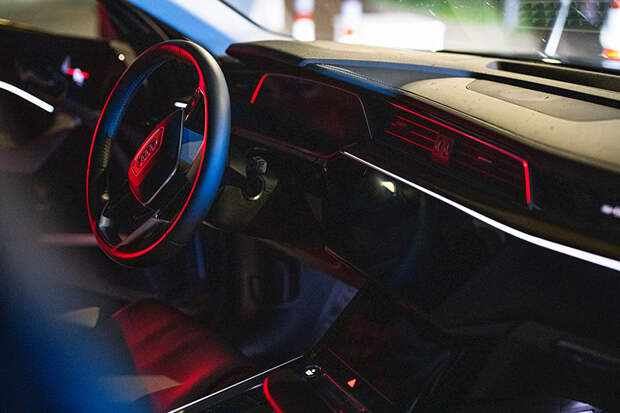 Что же касается эстетики, то футуристичный экстерьер и салон модели также продиктованы стремлением Audi к будущему и глобальной электрификацией. Горизонтальные полоски дневных ходовых огней образуют надпись e-tron, черные вставки на дверях указывают на расположение батареи, а ярко-оранжевые эмблемы e-tron на крышке зарядного разъема напоминают о высоком напряжении. Яркие акценты перенесены в интерьер, но там они не перетягивают внимание, а лишь подчеркивают главную деталь салона, приборную панель Audi virtual cockpit. К водителю обращены два дисплея, через которые можно легким прикосновением управлять основными параметрами, — в Audi e-tron количество кнопок сведено к минимуму.