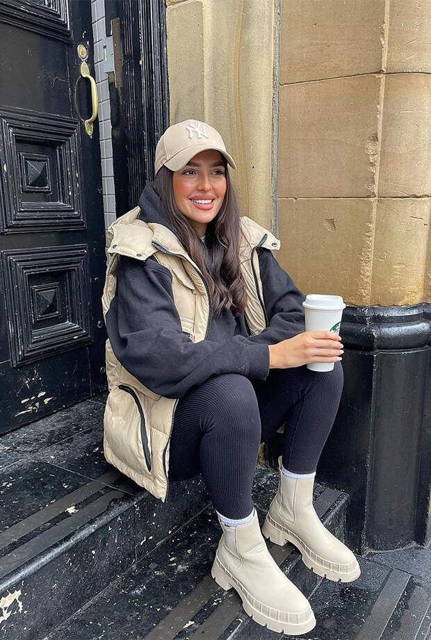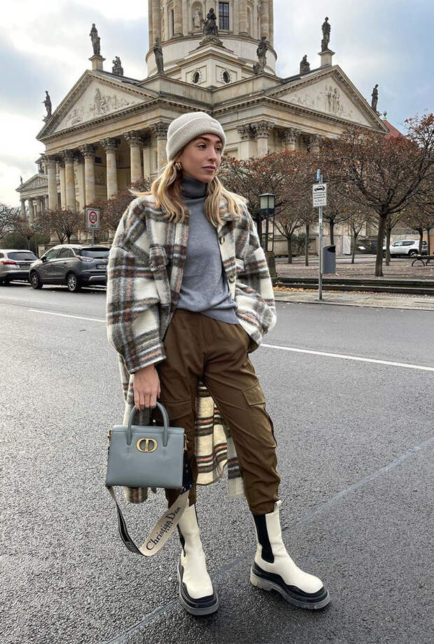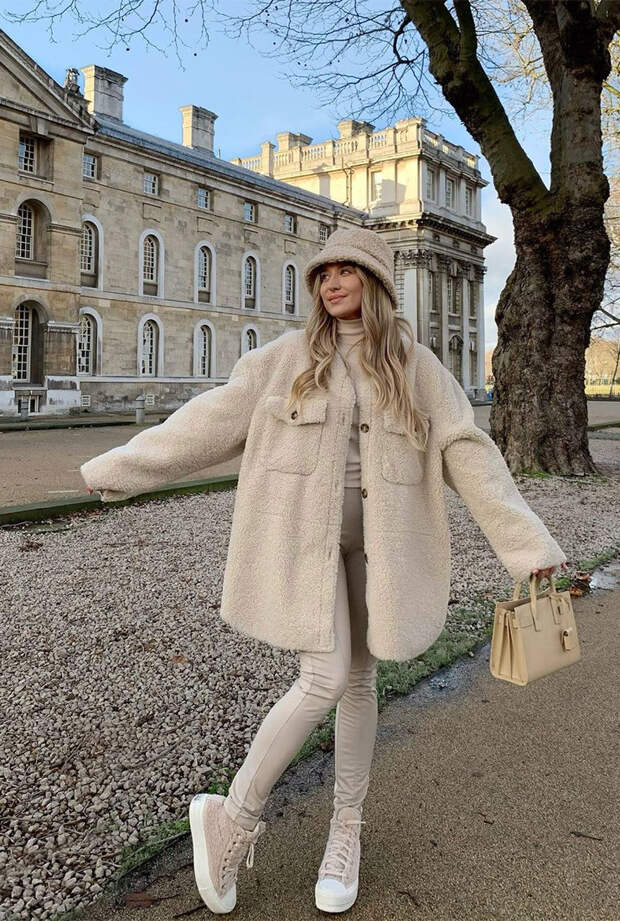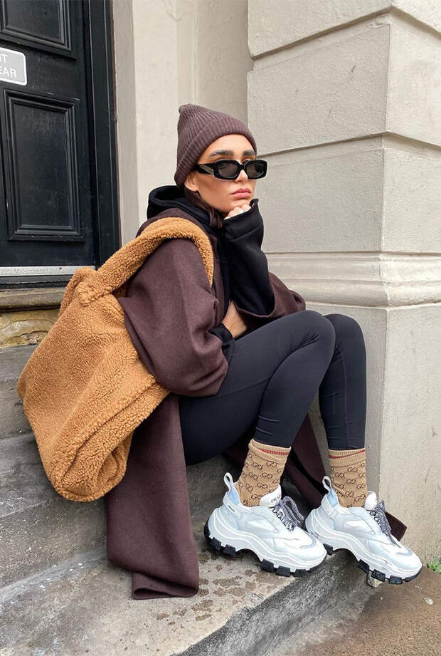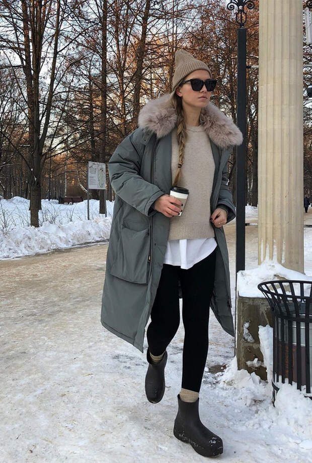 Безусловно, самое главное в данном случае – удобство. Если фигурное катание точно не ваш конек (как бы иронично это ни звучало), сразу отбросьте варианты с юбками и любимыми трикотажными платьями. От падений не застрахован никто – даже профессионалы – а изящно сделать это в юбке едва ли получится. Тем более вы наверняка знаете: красота уже давно не требует жертв. Поэтому самое время облачиться в любимый трикотажный костюм и дополнить его укороченным пуховиком, который точно не будет сковывать движений. Не забудьте о главных зимних аксессуарах – конечно, речь идет о шапке и перчатках. Они не только не дадут замерзнуть, но и с легкостью приправят аутфит стильными нотками. Не менее хороший вариант – надеть модные леггинсы со штрипками в тандеме с длинным свитшотом и, к примеру, шерстяной рубашкой. Дополняйте образ ультрамодным шарфом с принтом и меховой панамой – по примеру фэшиониста из нашей подборки.