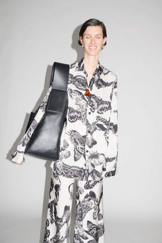 Что касается офиса, то здесь лучшим решением станут классические кожаные модели — необязательно черные. Присмотритесь к изящной белоснежной сумке от Prada или лаконичному макси-рюкзаку The Row. Носить такие аксессуары лучше всего с минималистичными брючными костюмами либо строгими платьями-рубашками.