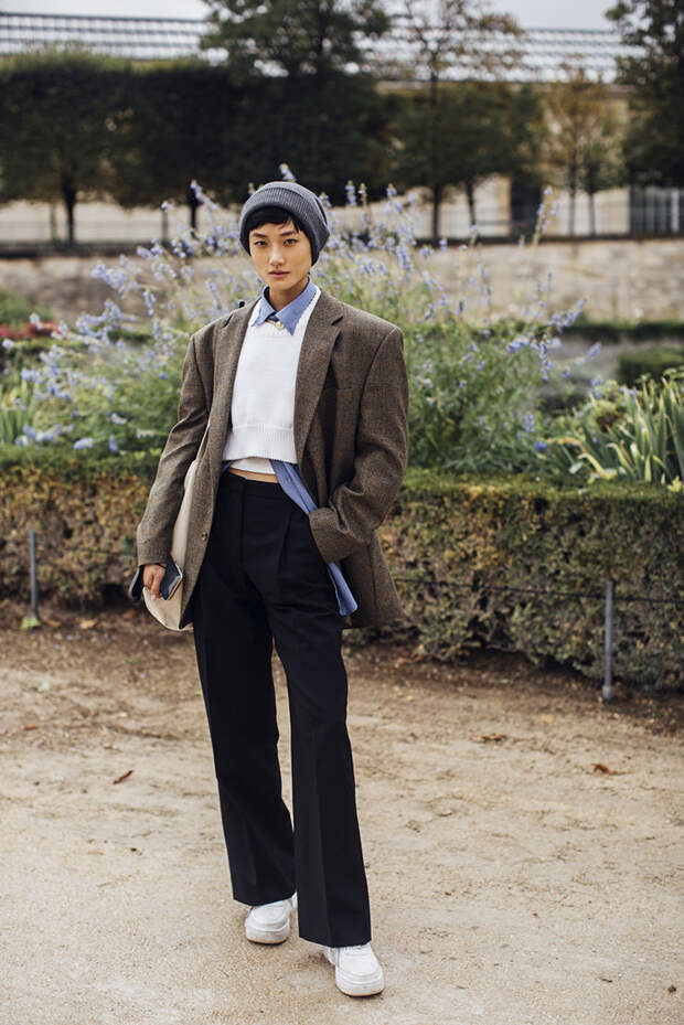 Ее особенность состоит в том, что она облегает голову и может полностью плотно прилегать к ней, а может торчать сверху. Такую шапку можно сочетать как с дутым пуховиком, как это делает Эмили Ратаковски, так и с утепленным пальто или стеганой курткой, а Хэйли Бибер надевает ее с модным в этом сезоне жилетом. В этом, пожалуй, одно из главных преимуществ шапки-бини: она одинаково хорошо будет смотреться как в классическом образе, так и в стритстайл-аутфите.