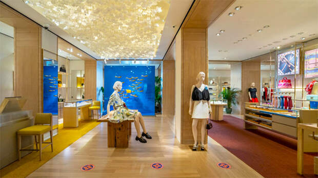 Теперь шоппинг-терапия возможна без отрыва от морских пейзажей и регат. В пространстве представлены последние новинки Дома, знаковые аксессуары и ароматы Les Parfums Louis Vuitton, а также здесь есть две просторные террасы с видом на набережную. Наблюдательный посетитель заметит, что потолок, украшенный цветами в стиле оригами, отсылает к коллекции предметов интерьера Louis Vuitton Objets Nomades, а новинки из последних коллекций – к началу сезона осень-зима."Дневная красавица" Fendi