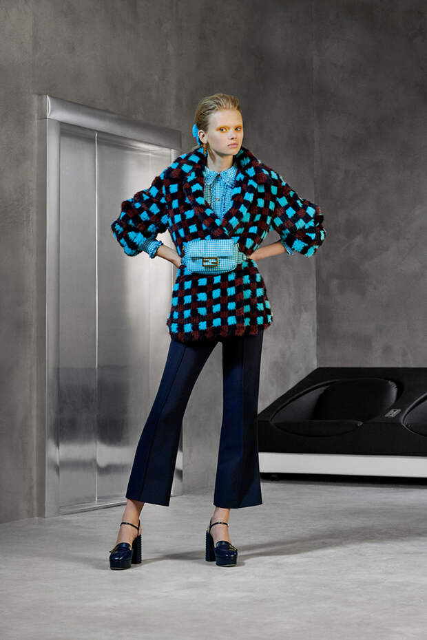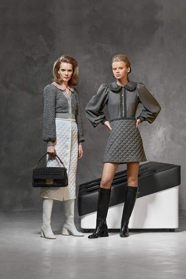 В предосенней линейке Fendi особое место занимает идея двойственности: в коллекции, как и в культовом фильме “Дневная красавица”, давшем ей название, соединяются озорная невинность и аристократическая грация, безупречная элегантность и томная женственность. Так, ультралегкая серая фланель используется и для создания мужского блейзера, и для милого мини-платья с крошечными оборками. Вечерняя одежда в коллекции представлена кокетливыми моделями ярко-бирюзовых и кораллово-оранжевых оттенков из прозрачного тюля, органзы и нейлона. Образ идеально дополнят туфли Colibri – их обновленная версия на узком каблуке с верхом из сетки и драпированного тюля.