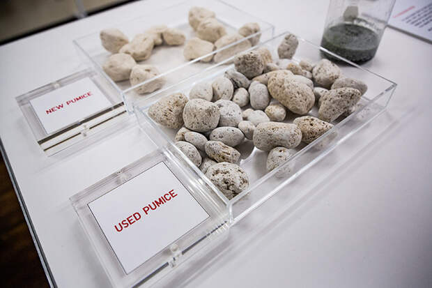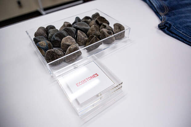Для финальной стирки в барабан машин на традиционных фабриках обычно кладут пемзу или кусочки булыжников. Через некоторое время они стираются в порошок и требуют замены. Учитывая то, что сегодня мы печатаем на 3D-принтерах даже человеческие органы, использовать в производстве искусственные камни оказалось до гениального простой и невероятно удачной идеей. Вместе с другими экотехнологиями этот шаг позволил Fast Retailing сократить расход воды до 99%.
