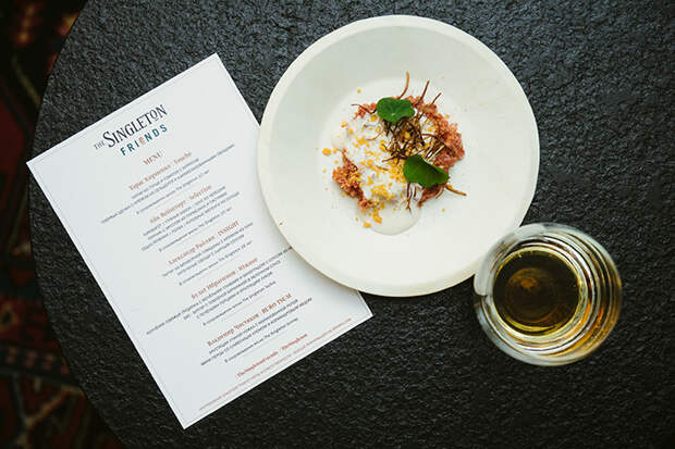 Александр Райлян, шеф INSIGHT, считает, что к The Singleton 18-летней выдержки подойдёт тартар из двух видов говядины с луковым эспума и овощи, пломбированные в виски и каштановом меде, с соусом из копченого козьего сыра. Стоимость сета - 1570 руб.