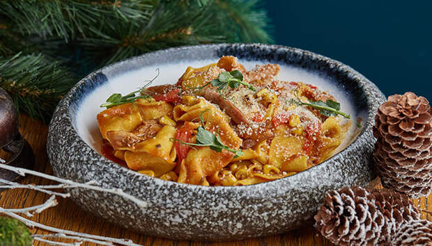 В ресторане Юлии Высоцкой Food Embassy заранее позаботились о рождественском меню и подготовили целых пять блюд с гусем.