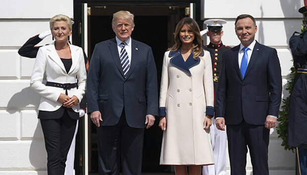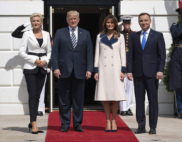 Мелания Трамп на время пропала с радаров. В последние месяцы первая леди не часто появляется на публике, но если она выходит в свет, то об этом говорят все. Вчера президент США принимал в Белом доме главу Польши Анджея Дуду и его супругу. Мелания встретила иностранных гостей в двубортном пальто классического кроя от Gucci, которое дополнила любимыми лодочками.