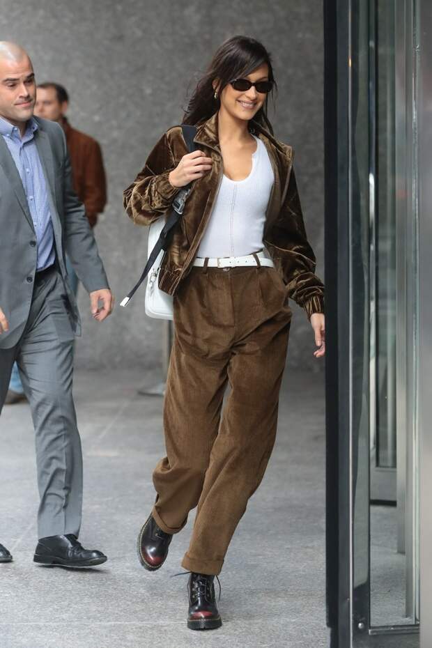 Ответив всем, кто критикует ее за излишнюю худобу, Белла Хадид вместе с другими "ангелами" отправилась в нью-йоркский офис Victoria’s Secret. Словно специально, чтобы лишний раз не подчеркивать свои стройные (а для кого-то — излишне стройные) ноги, Белла выбрала объемные вельветовые брюки и свободную бархатную куртку в ультрамодном шоколадном оттенке.