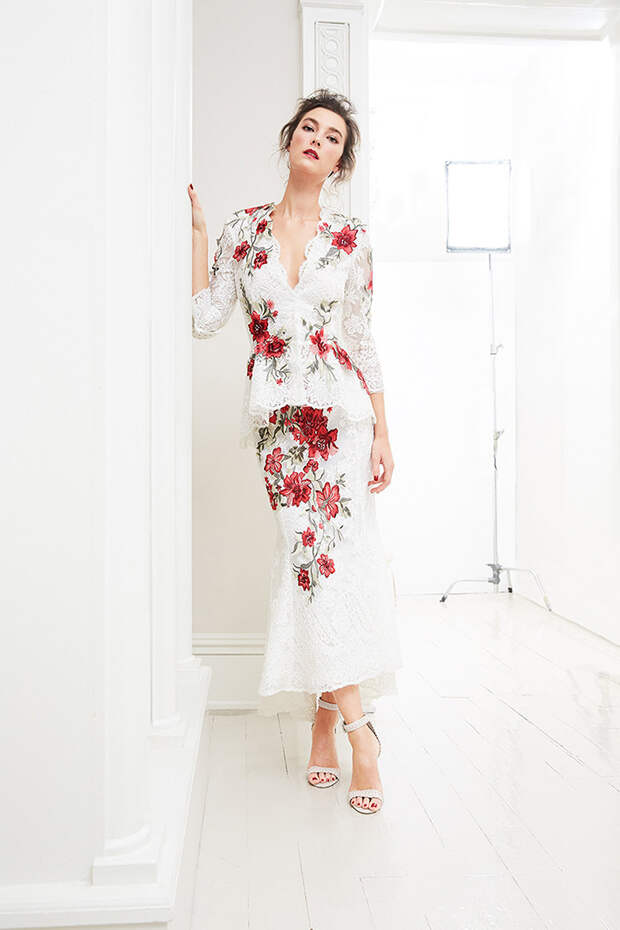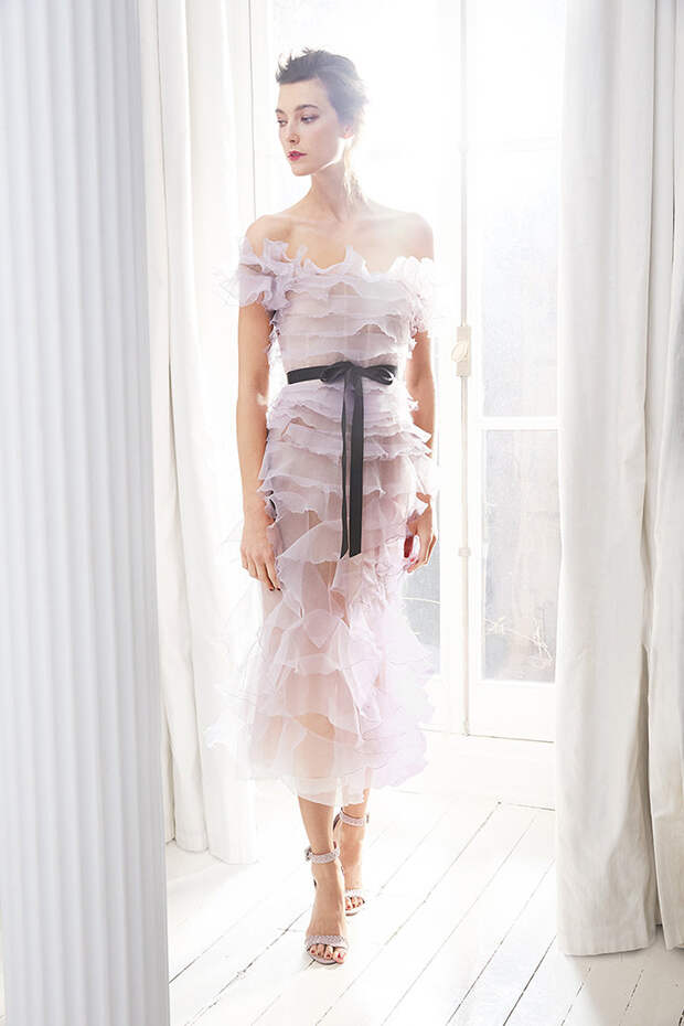 Где еще искать вдохновение для создания образа для новогодней вечеринки, если не в коллекциях Marchesa? Бессменный креативный директор нью-йоркского бренда Джорджина Чапман знает толк в роскошных платьях для самых важных торжеств. На них построена вся коллекция Pre-Fall 2020: здесь найдутся и коктейльные миди (сдержанные платья-рубашки в стиле 50-х принтом в виде роз и расшитые серебряными цветами бюстье из шифона), и нескромные вечерние макси в пол, достойные церемонии «Оскара».