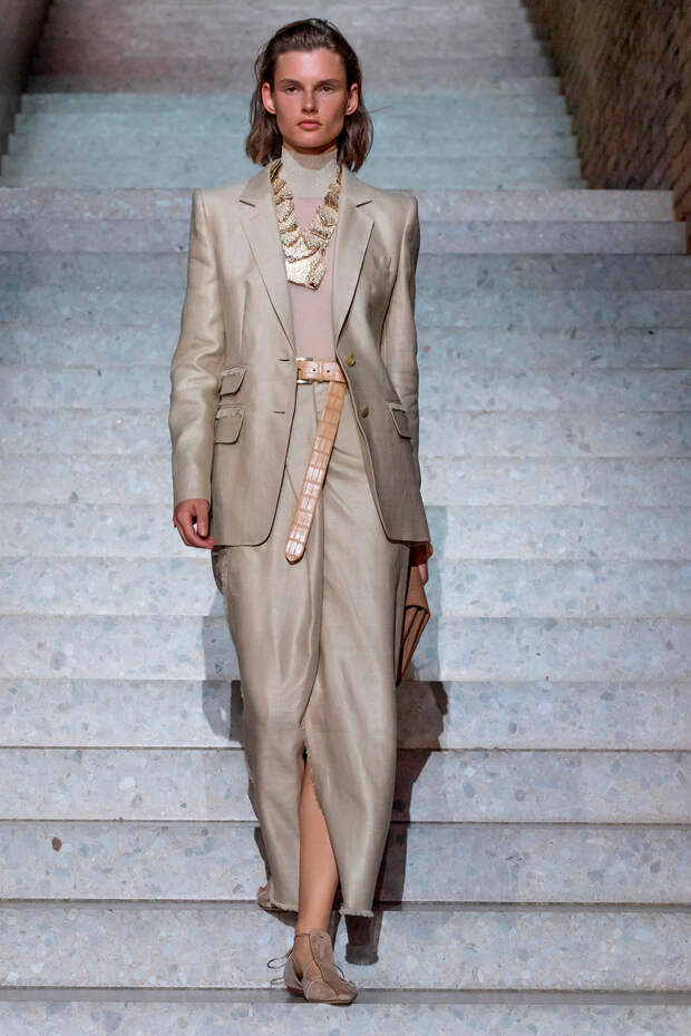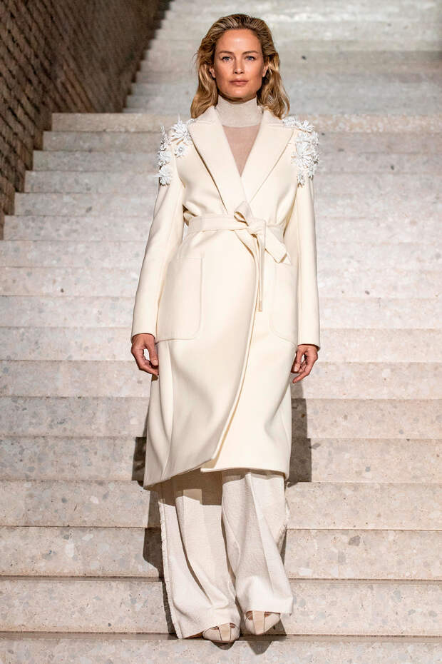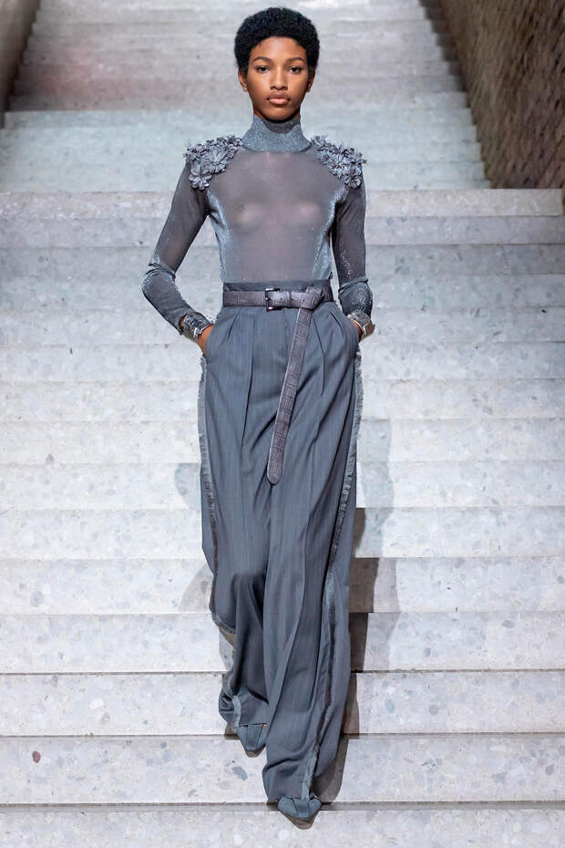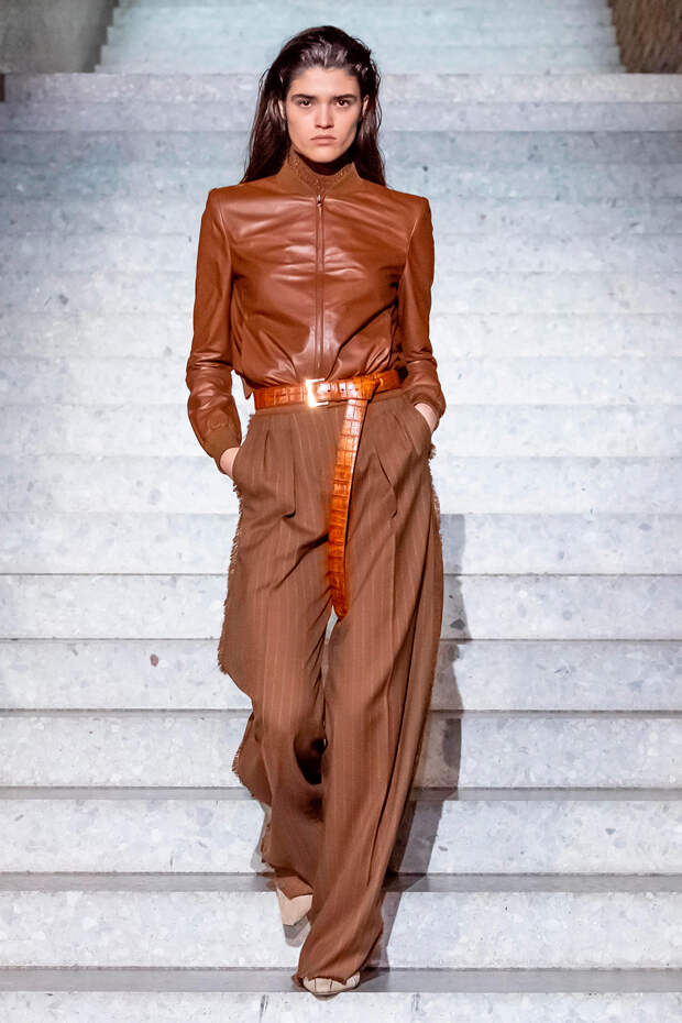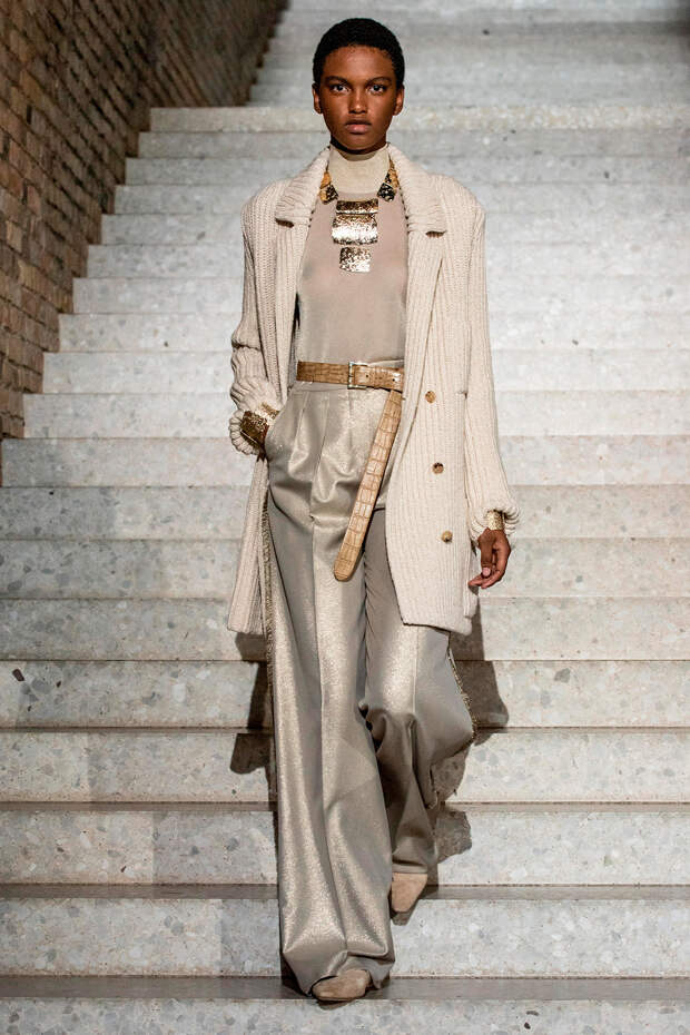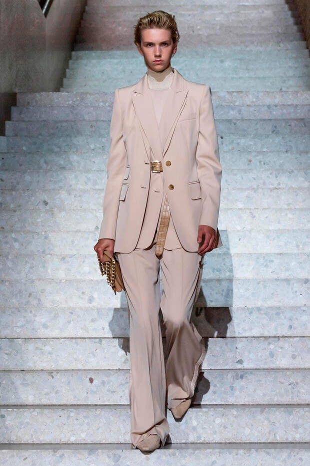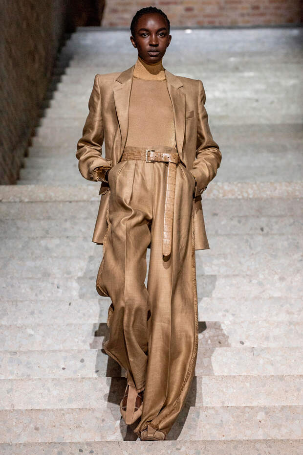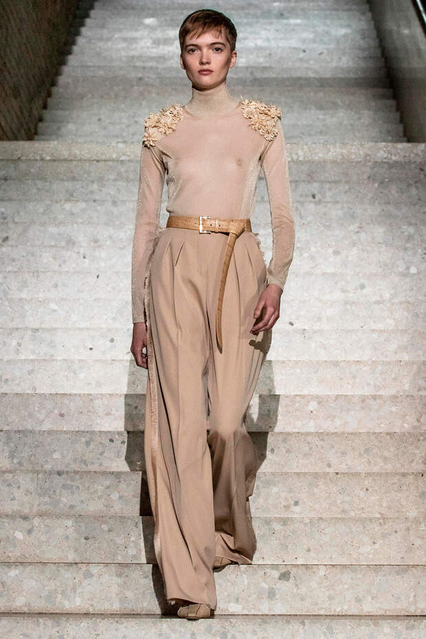 Фундаментом цветовой палитры стали беспроигрышные базовые оттенки: бежевый, песочный, серый, алый и молочно-белый. На их фоне мы получили увлекательную игру фактур: брючные костюмы с люрексом, прозрачные топы на голое тело с "погонами" из объемных цветов в тон, фирменные пальто и тренчи с "морозным" напылением и шубы-"чебурашки" с вкраплениями золотых нитей. Ремни с тиснением "под рептилию" стали незаменимым акцентом на фоне оверсайза — их теперь можно носить даже в паре с вечерними платьями, а обувь стала гимном монохрому, и это оправданно — босоножки и туфли в одной гамме с брюками и макси дарят нам столь приятный эффект "бесконечно" длинных ног.