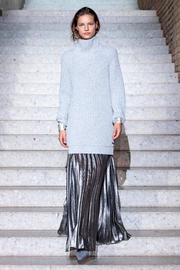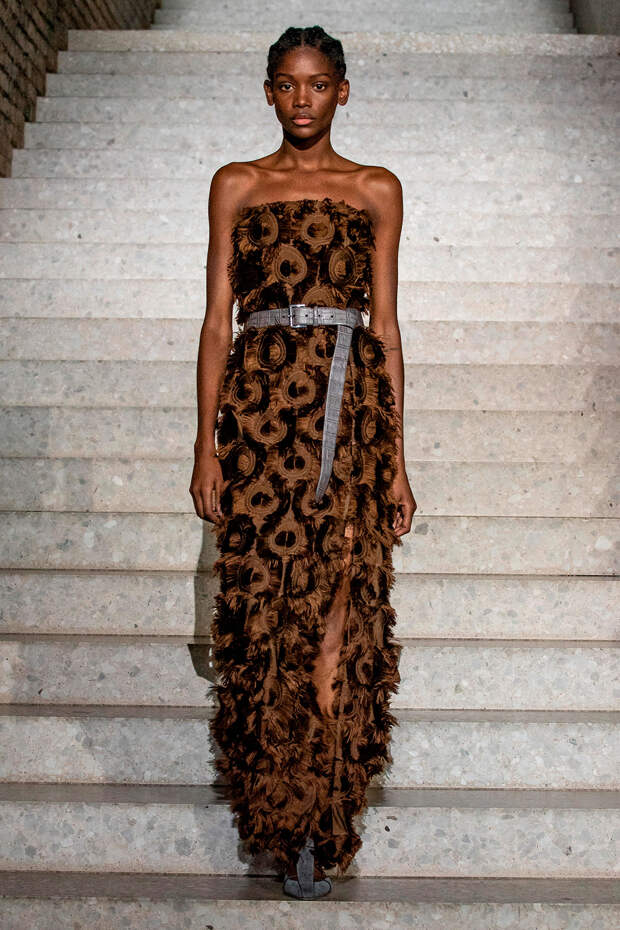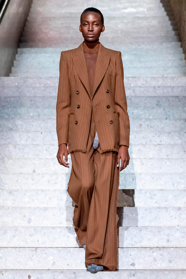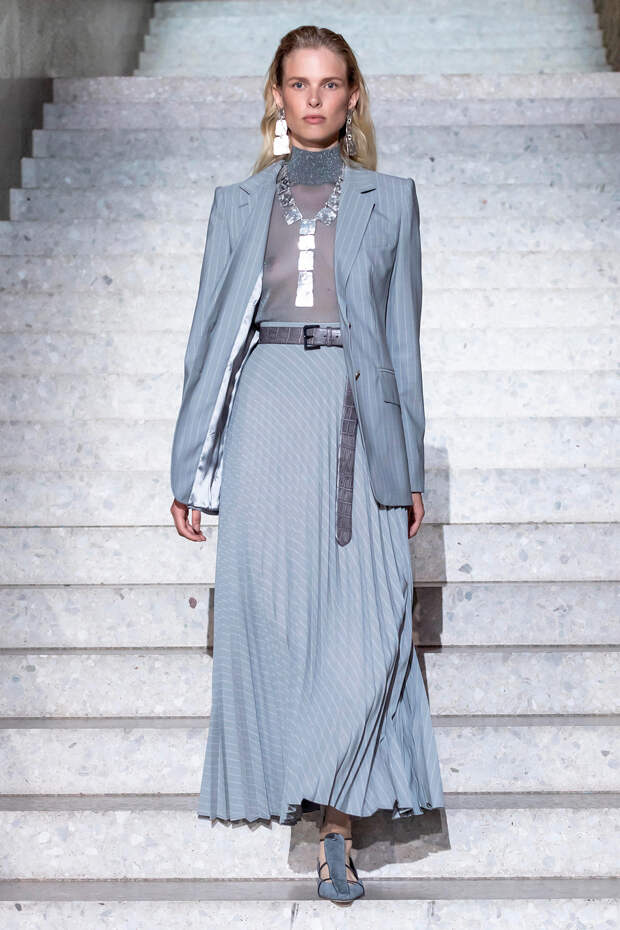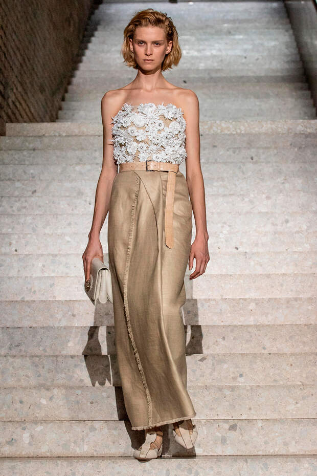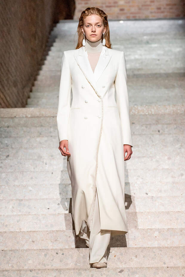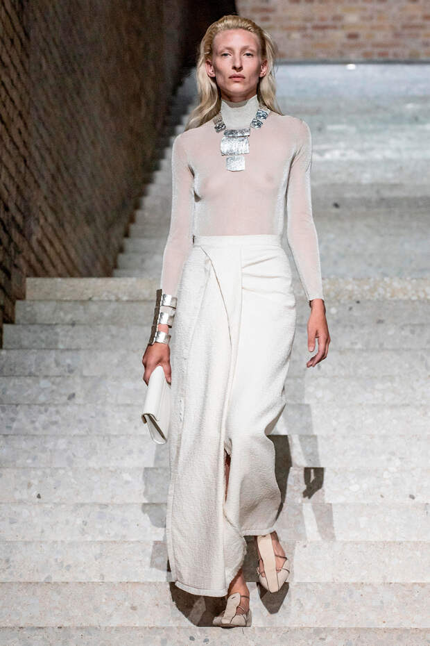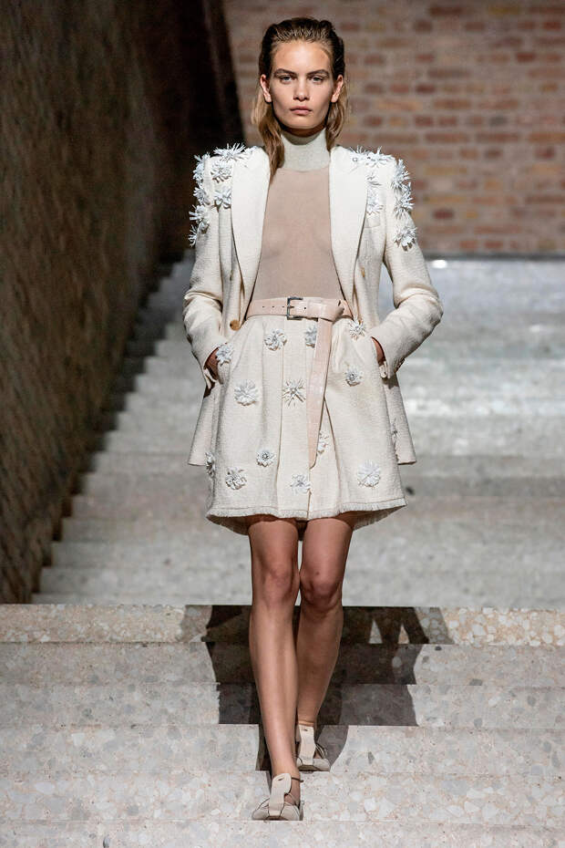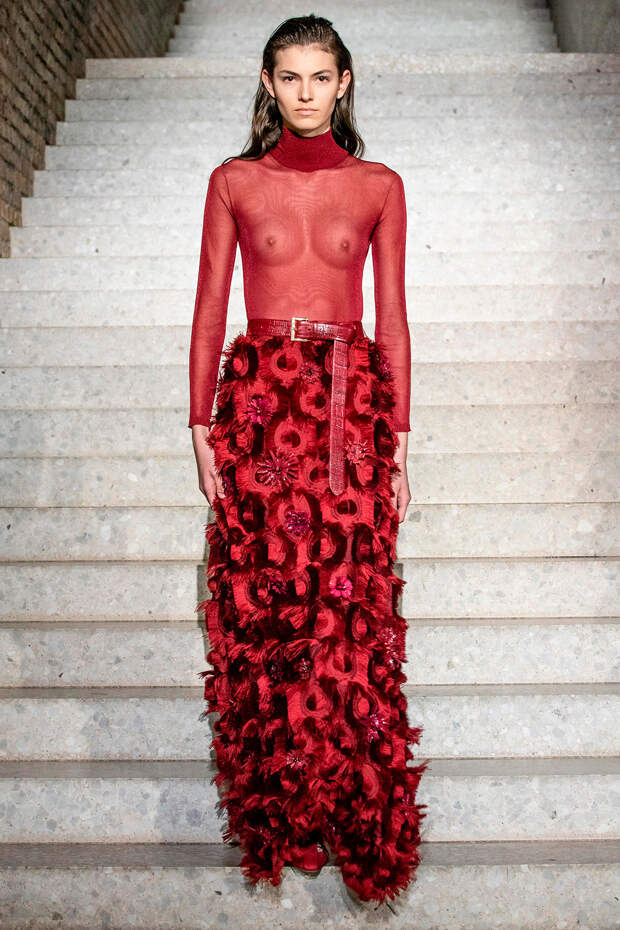 Фундаментом цветовой палитры стали беспроигрышные базовые оттенки: бежевый, песочный, серый, алый и молочно-белый. На их фоне мы получили увлекательную игру фактур: брючные костюмы с люрексом, прозрачные топы на голое тело с "погонами" из объемных цветов в тон, фирменные пальто и тренчи с "морозным" напылением и шубы-"чебурашки" с вкраплениями золотых нитей. Ремни с тиснением "под рептилию" стали незаменимым акцентом на фоне оверсайза — их теперь можно носить даже в паре с вечерними платьями, а обувь стала гимном монохрому, и это оправданно — босоножки и туфли в одной гамме с брюками и макси дарят нам столь приятный эффект "бесконечно" длинных ног.