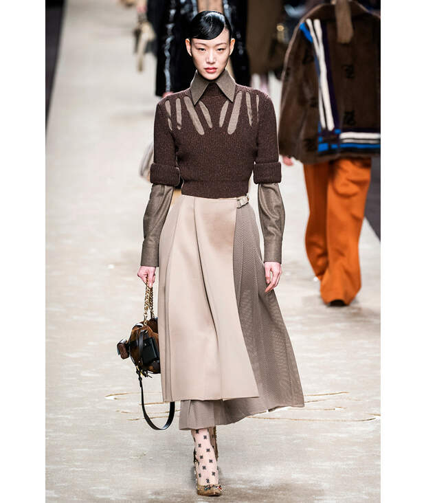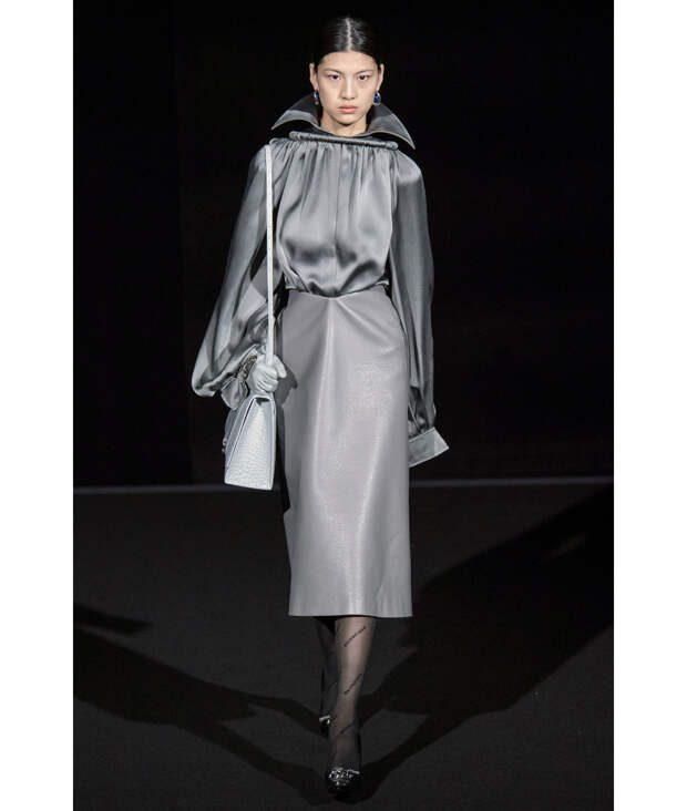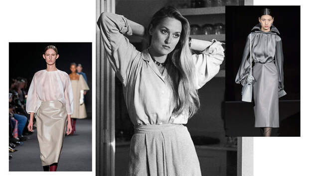 Чтобы без потерь перевести феминистское высказывание родом из 70-х на язык новой женственности, используйте треугольные вырезы, сложную прозрачность и контрастные фактуры (отлично работают, например, шелк и кожа). А заодно скажите решительное «нет» эйджизму и добавьте какой- нибудь ретроаксессуар – «бабушкину» сумку на короткой ручке или высокие перчатки.