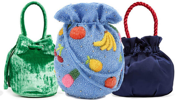 Если вам кажется, что вокруг одни плетеные корзинки и авоськи, то обратите внимание на мягкие мешочки формата мини. Эти малышки нарочито декоративны, поэтому сочетайте их с объемными плащами, потертыми джинсами, жакетами оверсайз и худи. Тот же налет богемности и винтажности, но, в отличие от авосек и плетенок, сумочки из фактурного текстиля можно носить и зимой – в дополнение к вечернему образу.