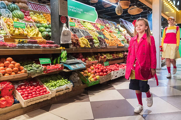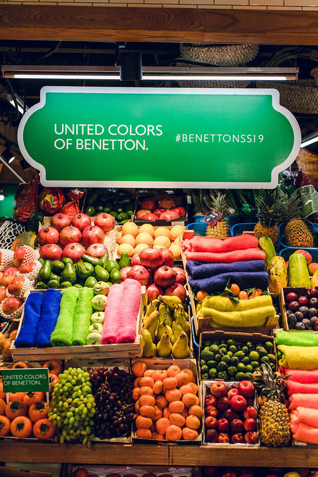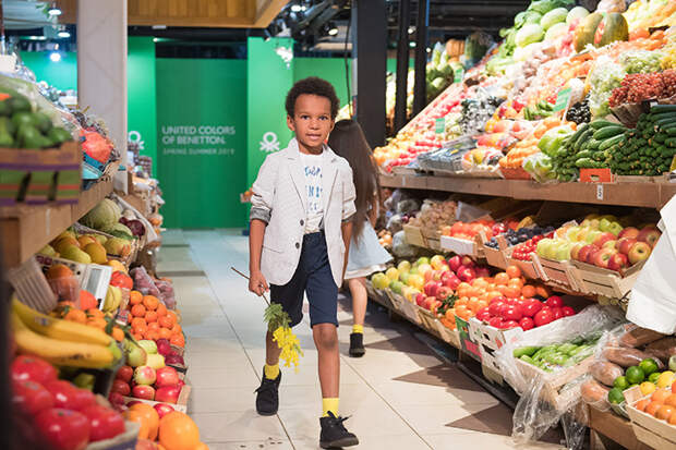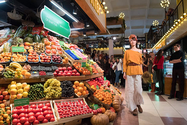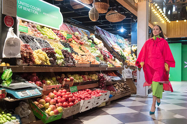 Сегодня состоялся первый в истории компании показ United Colors of Benetton в России. В качестве локации был выбран Усачевский рынок в Москве: его оживленная атмосфера и яркие прилавки с фермерскими продуктами, овощами и фруктами соответствовали настроению весенне-летней коллекции итальянского бренда.