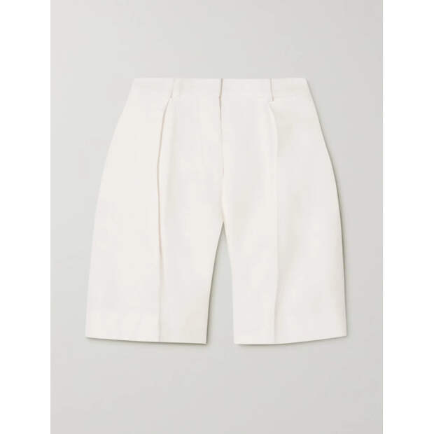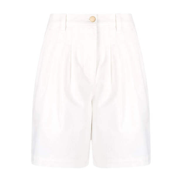Ну а для более сдержанного лука подойдут бермуды. Модель с защипами из легкого денима прекрасно сочетается с топами-бандо или облегающими боди. А прямые бермуды со стрелками выглядят эффектно не только в составе костюма-двойки, но и в комплекте с романтичной блузой из хлопка или льна.