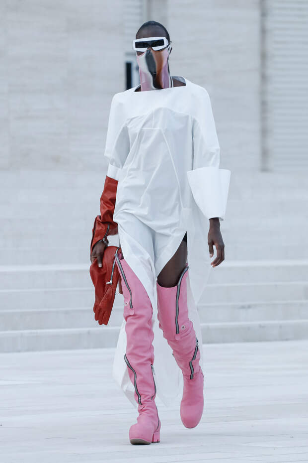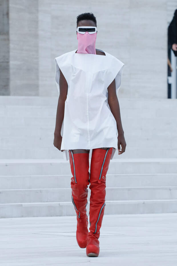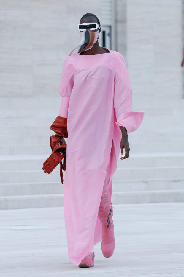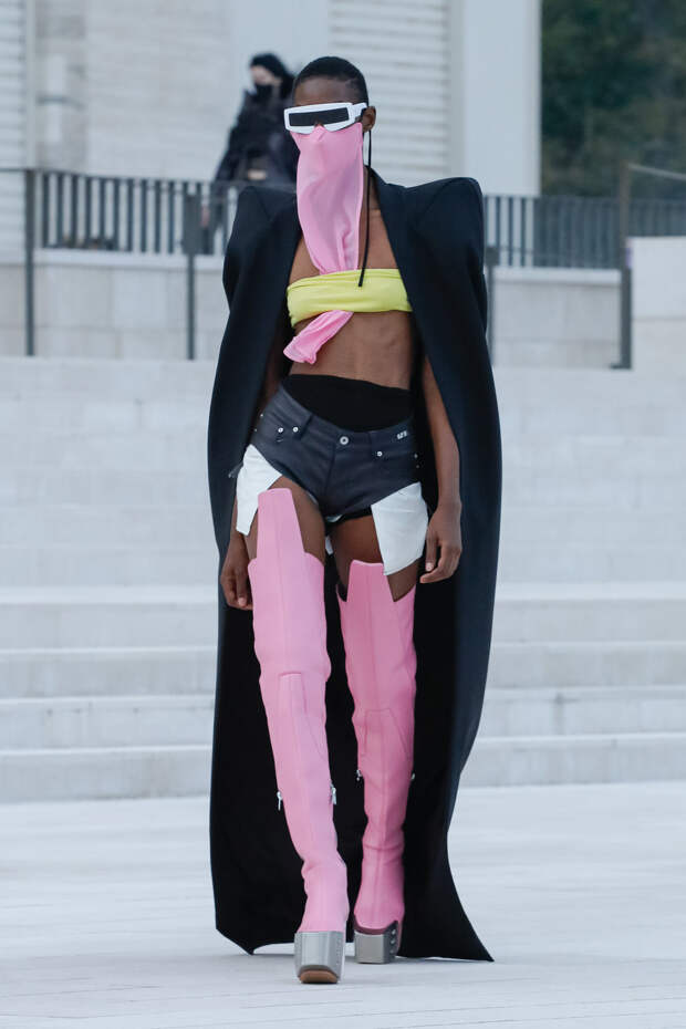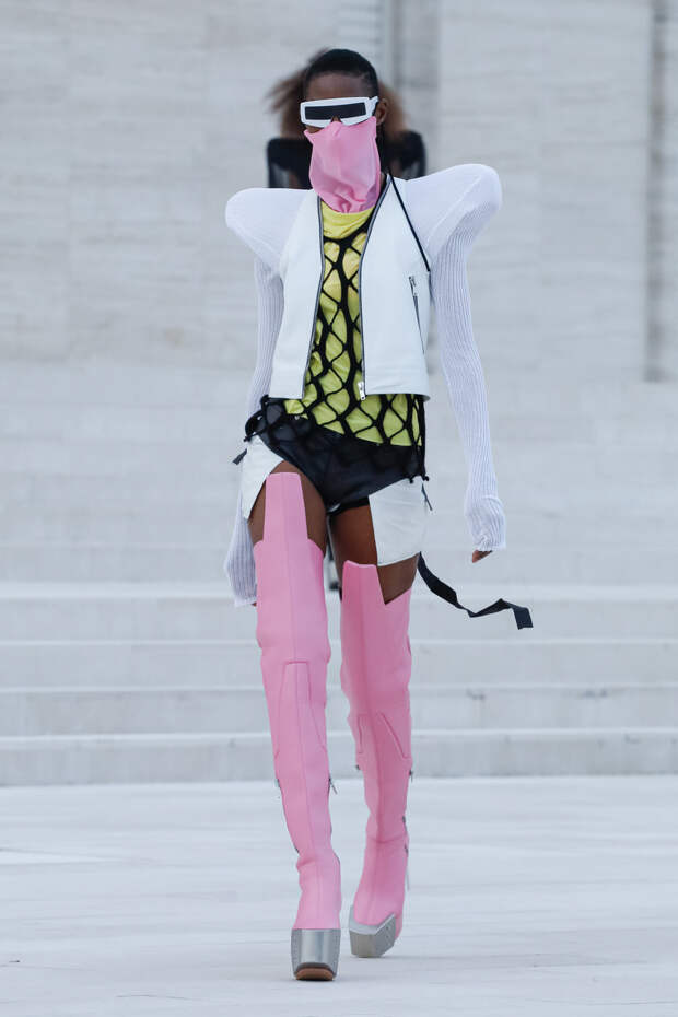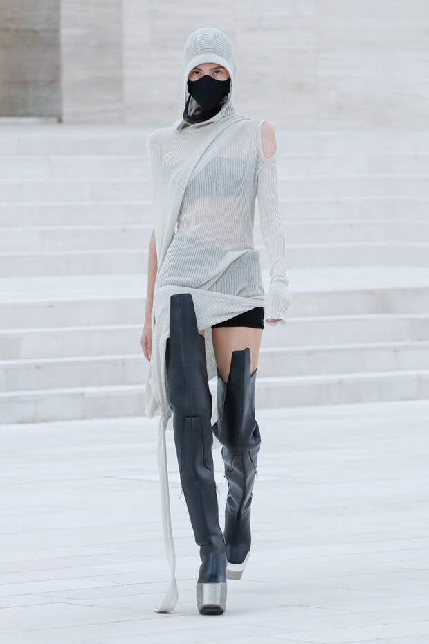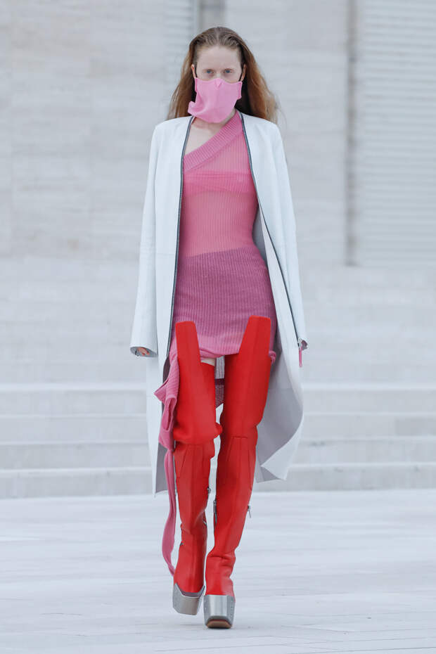 В аннотации к показу сам Оуэнс использовал фразу "мрачное веселье". Пожалуй, этот оксюморон как нельзя лучше описывает его новый сезон. Несмотря на указанный источник вдохновления, частично коллекция вышла визуально куда более яркой, чем обычно. В ней непривычно много цвета (красного и, внезапно, розового) и блеска (когда вы еще видели микро-шорты в пайетках на показе Rick Owens?). В саундтреке при этом был использован ремикс на знаменитую песню Донны Саммер "I feel love" — кажется, коллекция могла бы выйти под альтернативным названием "Disco inferno". Впрочем, несмотря на неожиданные всполохи цвета, в целом шоу вышло традиционно ахроматическим — в любимой черно-белой гамме дизайнера.