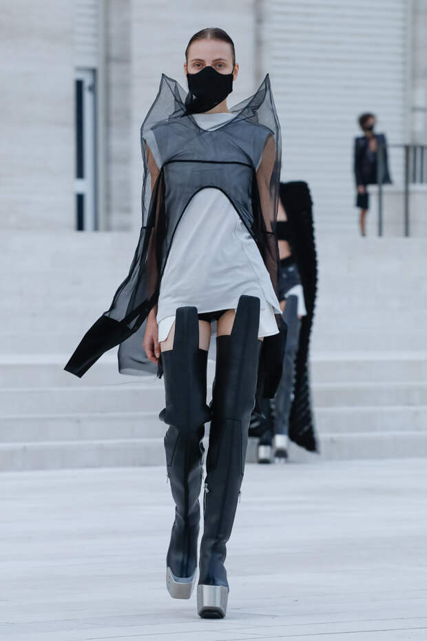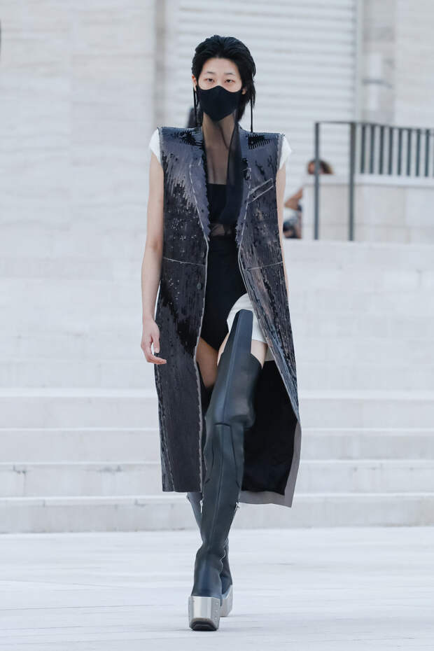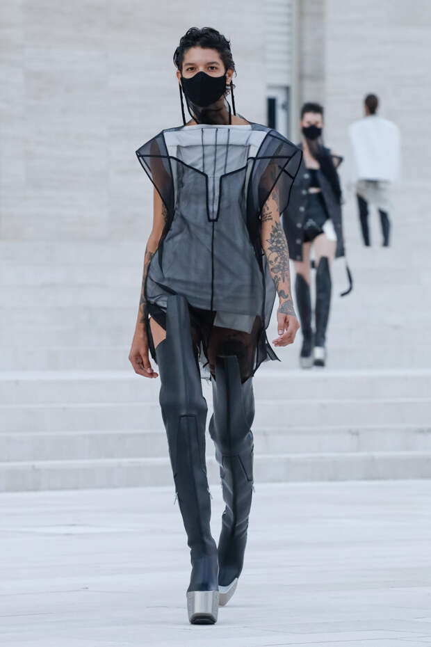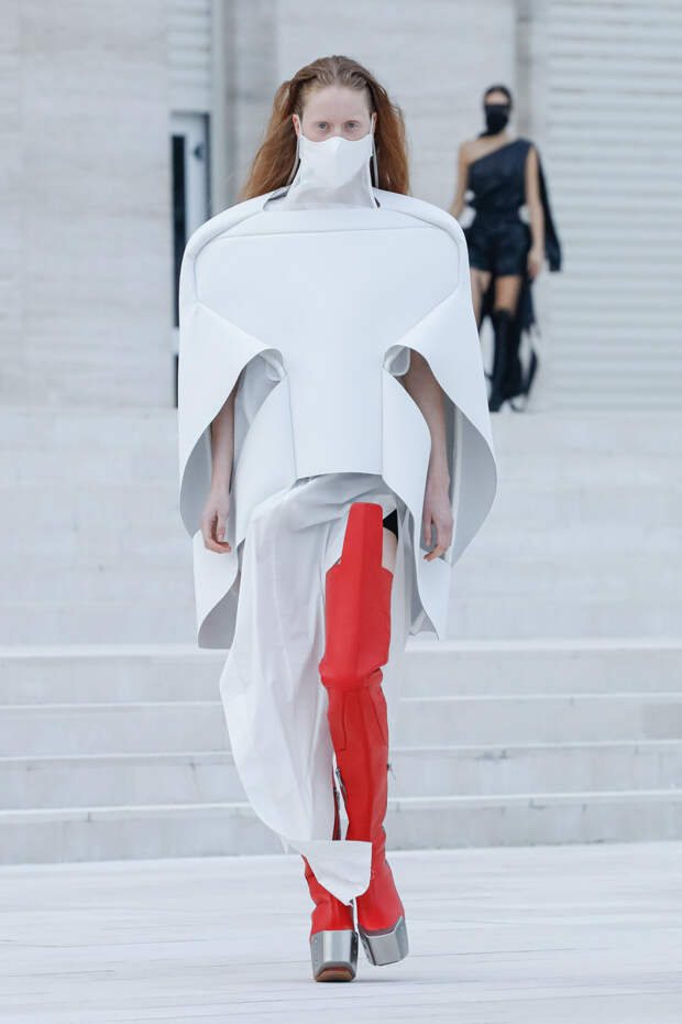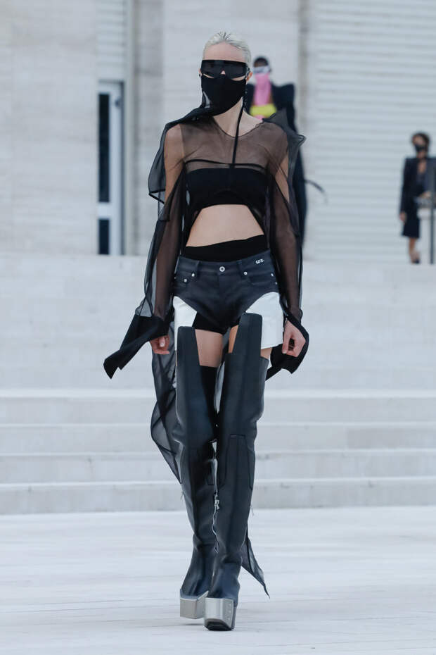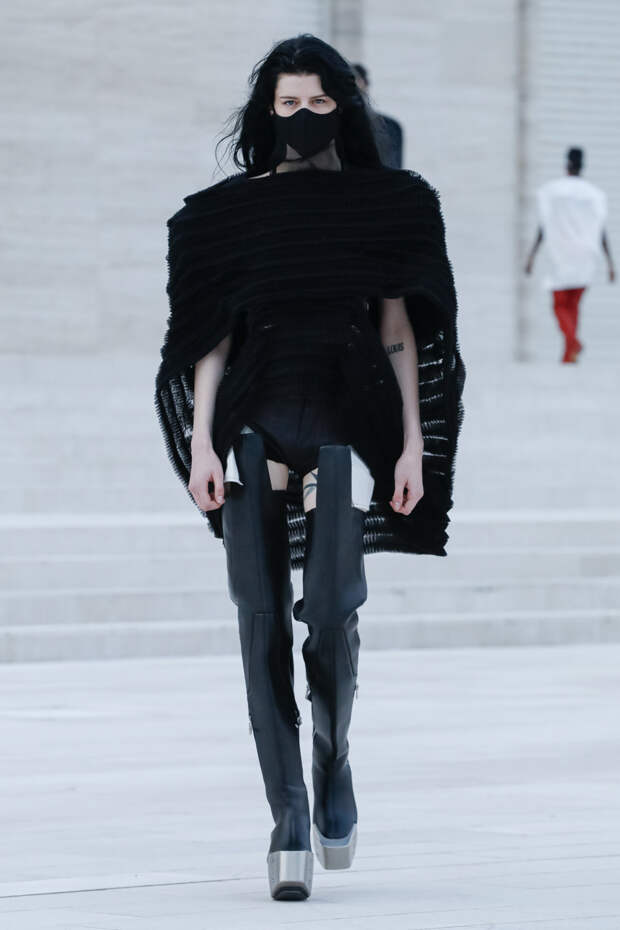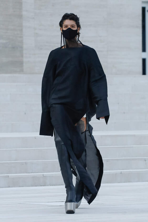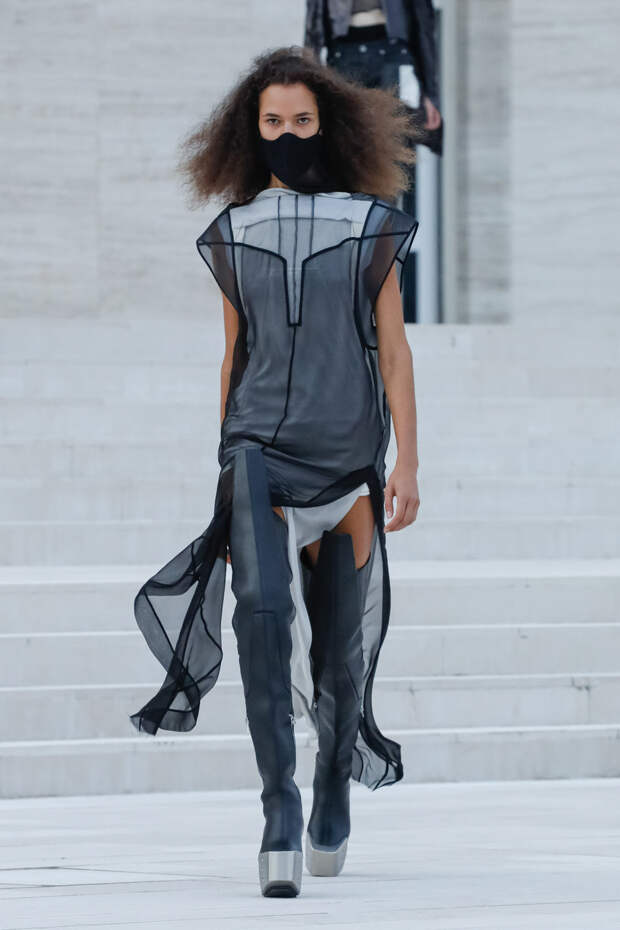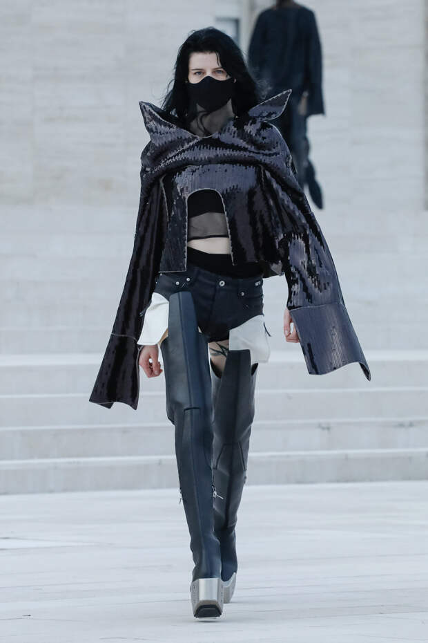 Пока одних дизайнеров ковид заставил переосмыслить свое отношение к жизни и работе и сделать весенне-летние коллекции более легкими и оптимистичными, Рик Оуэнс не стал поддаваться этим настроениям и остался верен себе. Король готики в моде назвал новое шоу "Phlegethon" — в честь одной из рек подземного царства в греческой мифологии и реки из кипящей крови у Данте.