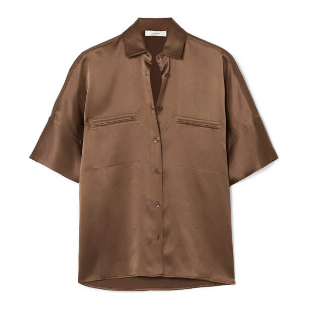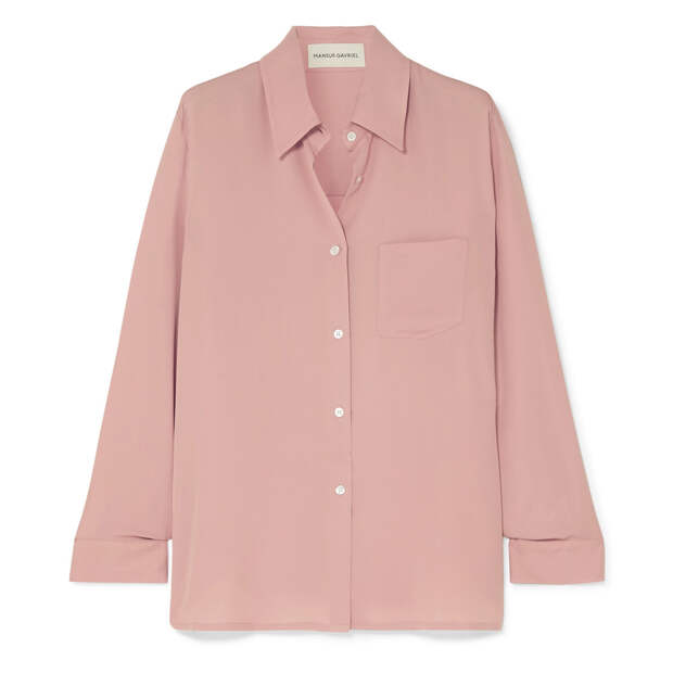 Наравне с брючным костюмом и черной мини-юбкой шелковые рубашки могут составить базу любого женского гардероба. Стоит надеть такой верх с обычными прямыми джинсами или заправить в лаконичную юбку, как тут же образ заиграет и станет эффектнее. При этом рубашку из шелка можно носить поверх топов в бельевом стиле и платьев-комбинаций, небрежно подвернув рукава, — особенно такое сочетание актуально в отпуске, когда не хочется брать с собой тяжелые жакеты или кардиганы.