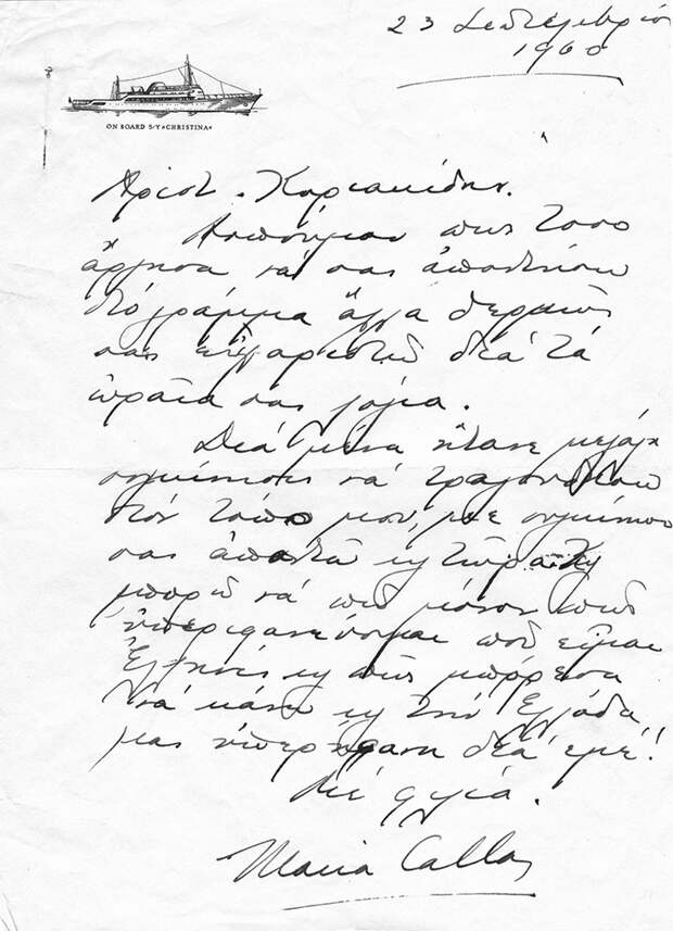 Письмо-мольба. Каллас еще не знает, что у Аристотеля Онассиса серьезные намерения относительно женитьбы на бывшей первой леди США Жаклин Кеннеди. Их знакомство началось еще при жизни президента Кеннеди – в октябре 1963 года, когда Жаклин гостила на яхте «Кристина».