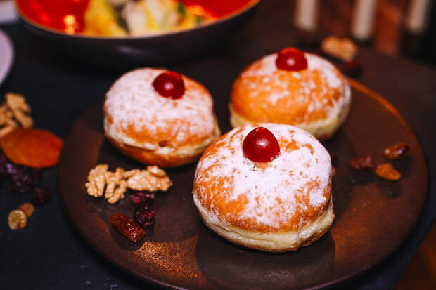 И точно будут кормить всеми традиционными еврейскими блюдами. Шеф-повар Александр Попов предлагает начать с таких блюд, как Баба-гануш из запеченных и перетертых баклажанов и форшмака из олюторской сельди. Закусив, переходите к гефилте фиш из карпа: тут его готовят со свеклой на одесский манер. Из горячего - котлетки из щуки или говядина в кисло-сладком соусе. И, конечно, традиционный десерт: суфганиет с сухофруктами и орехами. Эти пончики по обычаю готовят в большом количестве масла. Стоимость сета - 2490 руб. Под конец празднования, 9 декабря, в заведении устроят вечеринку с живой музыкой. Я что-то собралась наведаться, и, боюсь, безо всяких религиозных соображений.