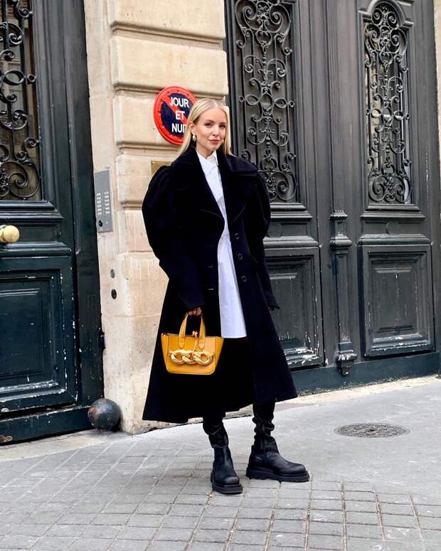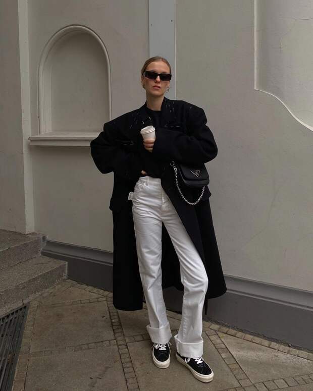 Он выступает как своего рода чистый холст, на котором более наглядно заметны ваши смелые визуальные решения. Вы никогда не будете выглядеть скучно в черном, если вдоволь экспериментируете с формой и пропорциями. Оверсайз, рукава-буфы, массивные гипертрофированные плечи, перетянутая ремнем талия, пышные юбки — вот лишь небольшой перечень того, что поможет вам оживить ваш total black. К слову, одеваться в этот цвет с ног до головы вовсе не обязательно. Более того, черная одежда (особенно верхняя) будет очень интересно и гармонично смотреться как раз-таки со светлыми аксессуарами и обувью — особенно с белыми. В общем, вариантов разнообразить образ с использованием этого самого загадочного (и универсального) оттенка — масса. А чтобы вы в них не потерялись, мы прилагаем "шпаргалку" с образами самых стильных девушек мира, которые лучше всех знают, как не выглядеть уныло и скучно.