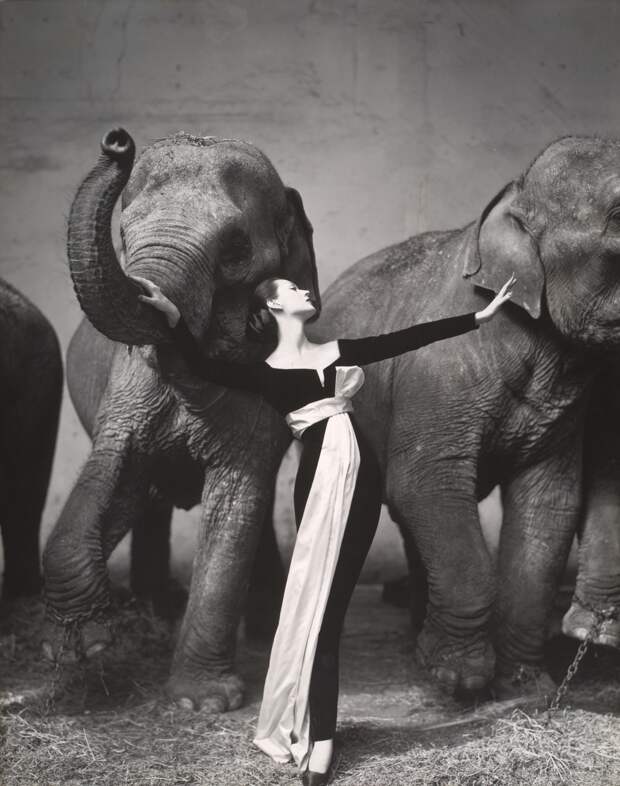 Самой знаменитой работой Довимы и Аведона стал снимок «Довима и слоны», который впервые появился в сентябрьском номере Harper's Bazaar за 1955 год. На нем модель позировала в первом платье, созданном 19-летним Ивом Сен-Лораном для Дома Dior: черном, с прямоугольным вырезом и белоснежным поясом, завязанном на талии бантом. Фото было сделано в помещении Зимнего цирка в Париже: партнерами Довимы по съемочной площадке стали три огромных африканских слона. По ее собственному признанию, поначалу ей было страшно сниматься с дикими животными, но в конце ей показалось, что им даже удалось подружиться. Снимок стал культовым и вошел в историю как один из знаковых в истории модной фотографии — но вот сам фотограф не был от него в восторге. Впоследствии он признавался, что должен был взять на съемки вентилятор — тогда пояс на платье лег бы по-другому.