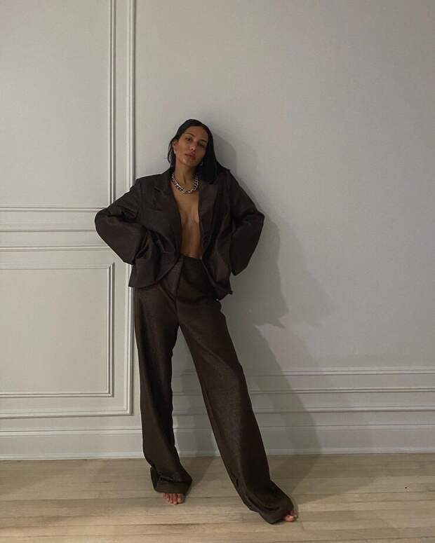 При выборе кроя и модели брючного костюма, в этом сезоне, конечно, стоит делать ставку на оверсайз, который, кажется, уже никогда не выйдет из моды. Пиджак с мужского плеча, который выглядит так, будто вам отдал его ваш бойфренд, когда вы замерзли сидеть на весенней веранде. И, конечно, огромные удлиненные и широкие "папины" брюки, которые волочатся по полу и протягиваются ремнем, чтобы не свалиться с ваших бедер.