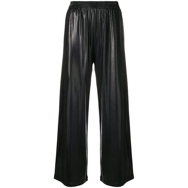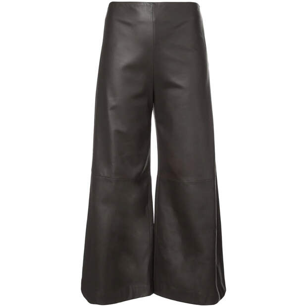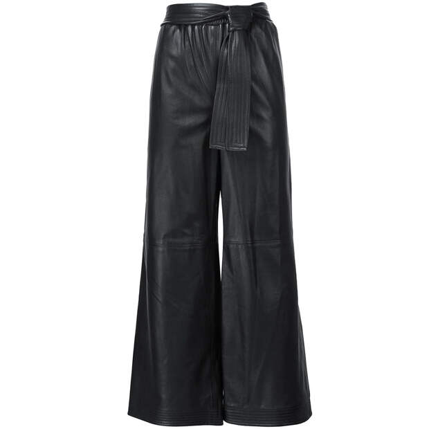 В эпоху оверсайза одной из любимых моделей брюк для фэшиониста стали широкие палаццо, но Оливия пошла дальше и заменила привычные модели из ткани на вариант в коже — с такими брюками "заиграют" даже самые строгие блузки и жакеты.