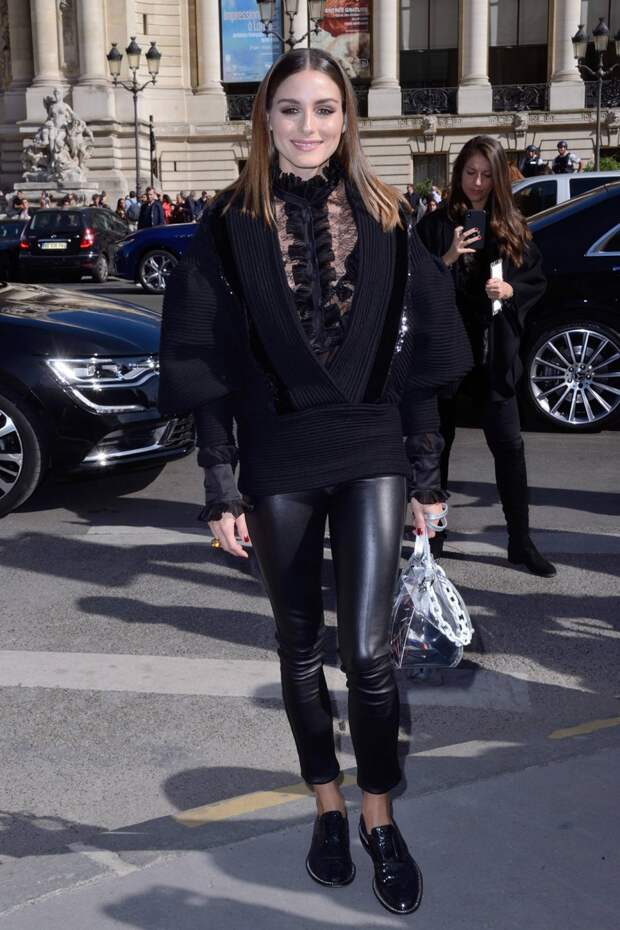 Узкие брюки из кожи есть в гардеробе каждой модницы — Виктории Бекхэм, Роузи Хантингтон-Уайтли, сестер Хадид и других, — и Оливия не стала исключением. Наша героиня носит их с дизайнерскими жакетами с перьями или свитшотами из масс-маркета (например, ее видели в Zara) и каждый раз собирает множество комплиментов.