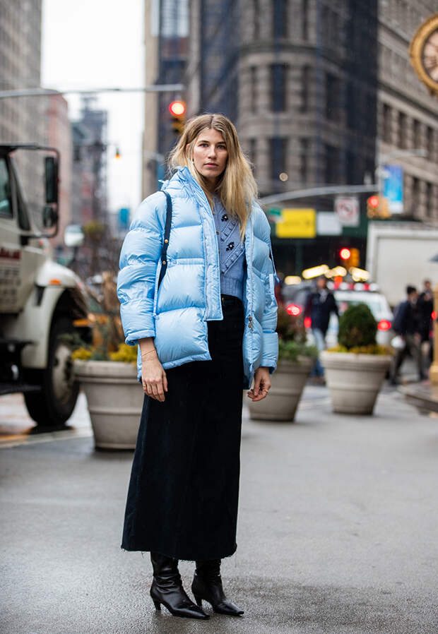 Вы не ошибетесь, если отдадите выбор в пользу однотонной модели (например, от Perfect Moment или Raf Simons). Такие куртки будут одинаково хорошо выглядеть как на склоне, так и в городской рутине – скажем, в сочетании с шерстяными брюками и свитером с шарфом. В этом сезоне нельзя упустить из виду пуховики с эффектом металлик – трендовую модель с высоким воротом можно найти у Cordova. Пожалуй, самый «лыжный» вариант – куртки с поясом (самые стильные варианты - у Fendi и Moncler Grenoble). Они больше всех намекают на спортивную эстетику, поэтому носить такие модели рекомендуем с изящными брюками с разрезами и, скажем, контрастными ботинками для хайкинга или даже трикотажным платьем длины макси – за вами точно будут оборачиваться вслед.