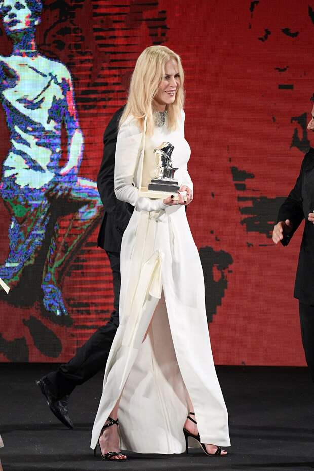 Николь Кидман прибыла в Италию, чтобы посетить Taormina Film Festival. Накануне вечером актриса получила награду, и в ходе мероприятия сменила сразу два наряда. На красной дорожке знаменитость дефилировала в миди-платье цвета фуксии, а после вышла на сцену в белоснежном одеянии в пол с высоким разрезом на юбке.