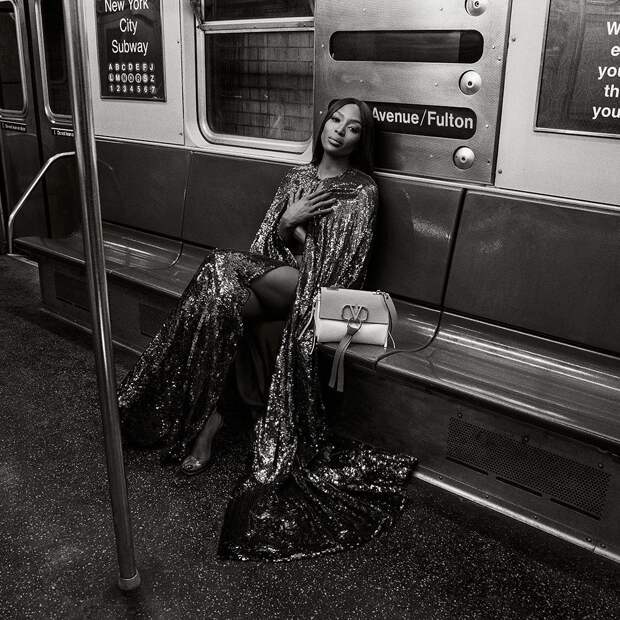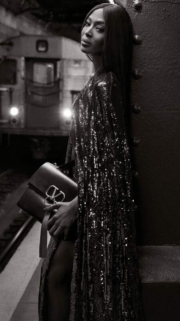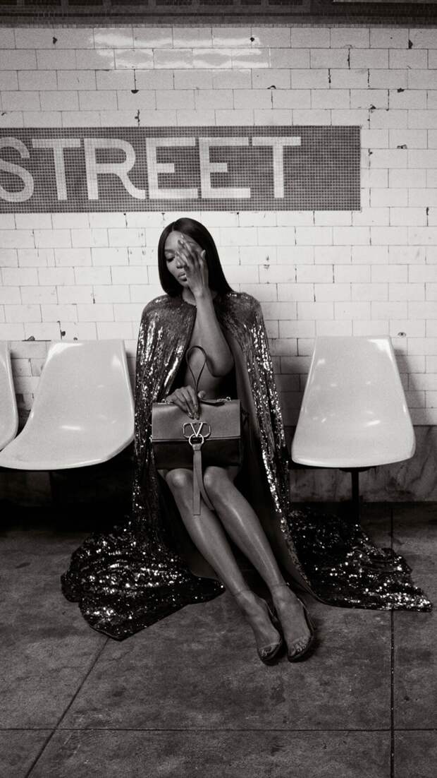 Итальянский модный Дом Valentino представил свою новую рекламную кампанию Vring Pre-fall - 2019. Главной героиней съемки стала топ-модель Наоми Кэмпбелл, которая в объективе Инез Ламсвеерде и Винуда Матадина позирует на станции нью-йоркского метро в расшитом пайетками кейпе. В руках Черная пантера держит сумку с обновленным V-логотипом.