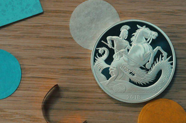 Также в ознаменование первого юбилея принца Джорджа, Королевский монетный двор Великобритании выпустил коллекционную монету в размере 5 фунтов стерлингов с изображением Святого Георгия на одной стороне и портретом королевы Елизаветы II на другой.