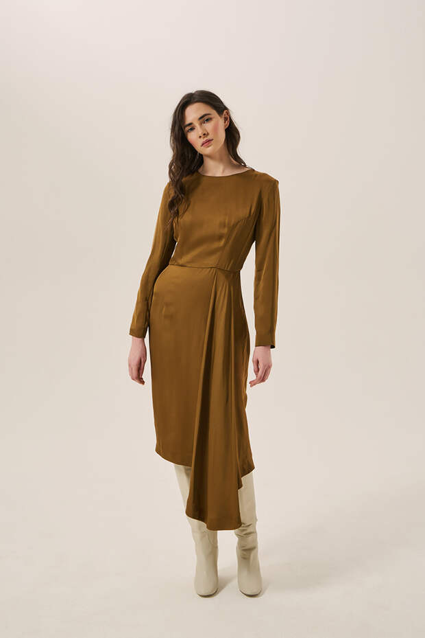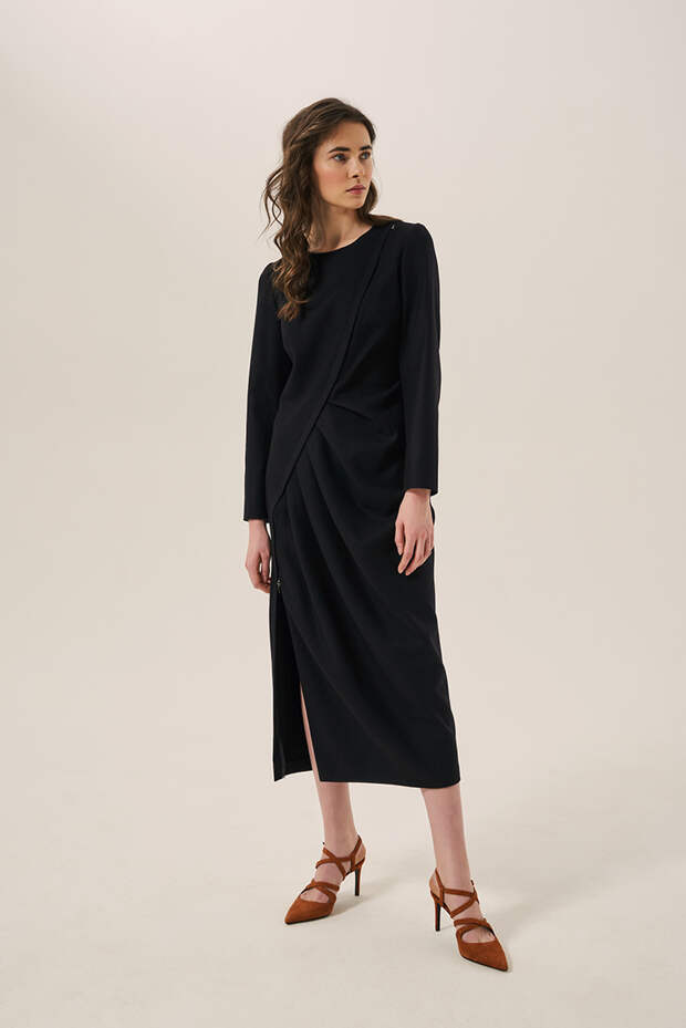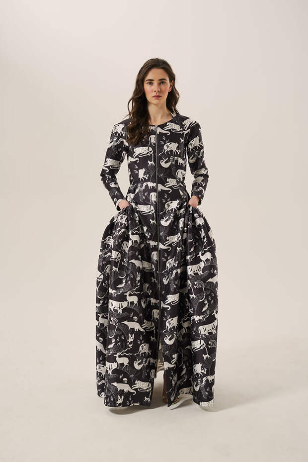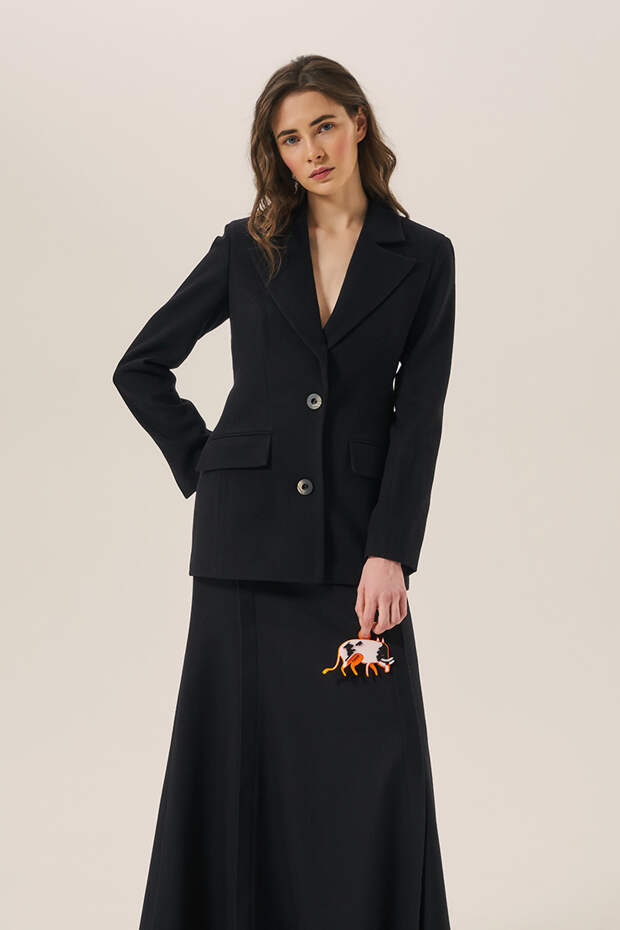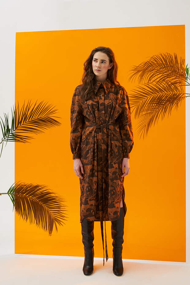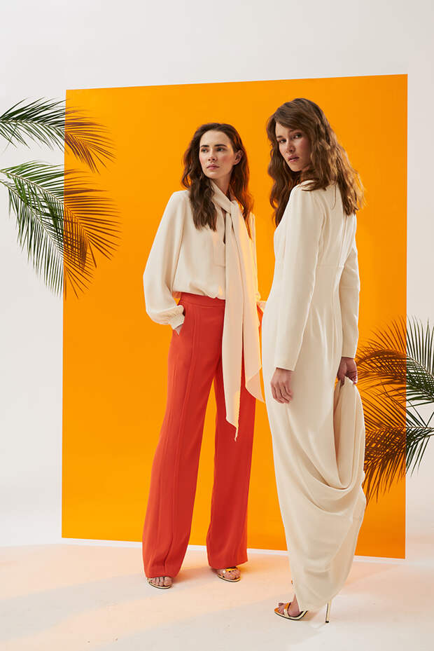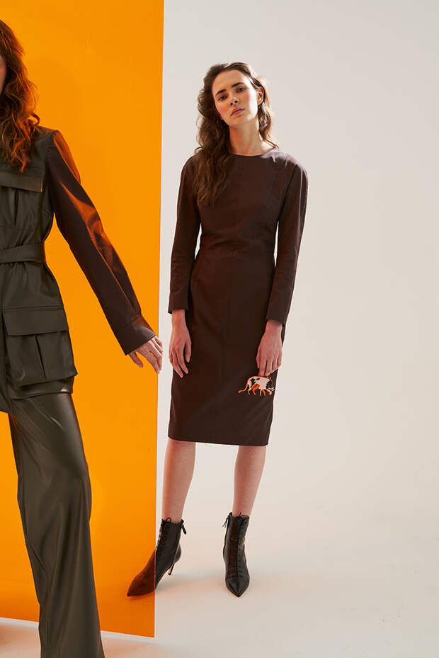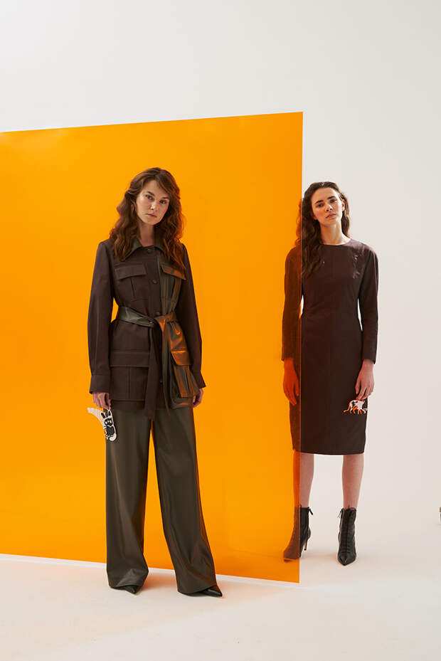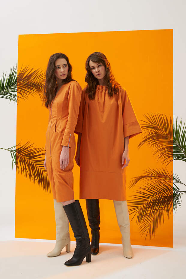 В новом осенне-зимнем сезоне дизайнер Юлия Давидян предлагает поностальгировать по 60-м и 70-м: ретропалитра, слегка разбавленная главным цветом этого года, мандариновым, юбки А-силуэта и платья-миди — глядя на эти вещи, сразу понимаешь, с чем и как их носить. Все благодаря тому, что Юлия делает ставку на функциональность, понятный дизайн и комфортные материалы: теплую шерсть и универсальные трикотаж и хлопок.