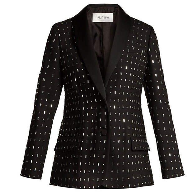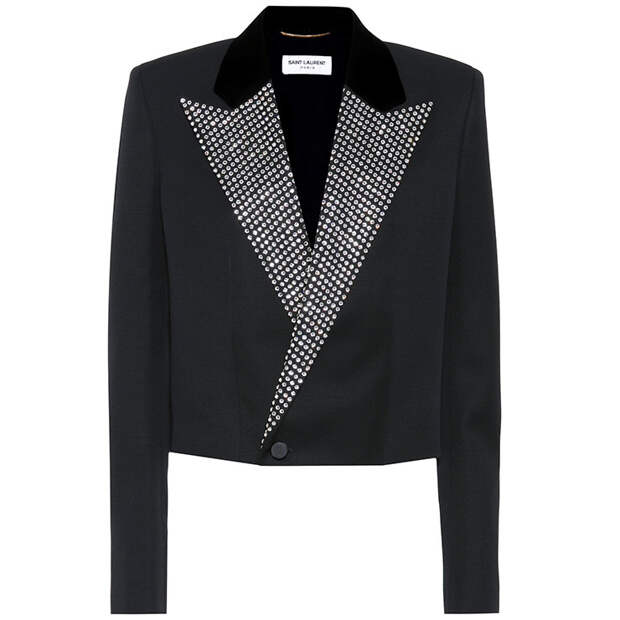 Пока легкие платья и располагающие к празднику мини ждут лета, обратите внимание на смокинги: не зря звезды все чаще появляются в них на красных дорожках, а дизайнеры из сезона в сезон украшают подобные модели вышивкой и необычными принтами. Да и без того нарядные модели из нашей подборки можно сделать еще интереснее, надев с контрастной водолазкой или, к примеру, ботильонами-носками. Так они точно выдержат холод и приятно разнообразят повседневный гардероб: лишние классические брюки из шерсти еще никому не вредили.