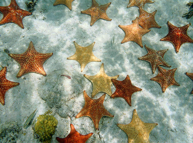 Морские звезды, которых на Эльютере легко можно ловить руками