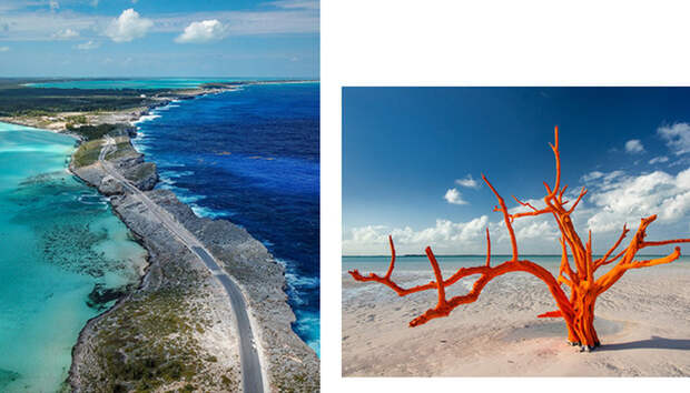 Узкий, как рыбья кость, остров с романтическим именем Эльютера (от греческого «свободный») растянулся аж на сто восемьдесят километров. В самом тонком месте находится так называемый мост «Стеклянное окно». Сделан он вовсе не из стекла, но постоять на нем все равно обязательно надо: такие виды открываются далеко не из каждой форточки. В реальности это перешеек шириной в пару метров между океаном и лагуной, и разница между водными просторами поражает воображение. С одной стороны бушующиеиразбивающиесяо скалы волны Атлантики, а с другой тишь да гладь ласкового внутреннего моря. Не поленитесь забраться на горку неподалеку: оттуда и фотографии эффектнее, и впечатления сильнее. На Эльютере становится окончательно понятно, почему багамский рай, несмотря на очевидное внешнее сходство, не похож на мальдивский, например. Островная жизнь здесь почти не тро- нута туристическим бумом, не загнана в резервации и не подчинена толпам отдыхающих. Она течет неторопливо, отказываясь суетиться ради лишних чаевых, как официант в кафе или улыбчивые продавщицы в сувенирном магазине по дороге в Грегори-таун, который работает, судя по вывеске, «каждый день, кроме воскресений и ураганов». Туда, кстати, надо обязательно заглянуть ради хлопковых пляжных платьев и необычной бижутерии из пластика, выловленного в океане.