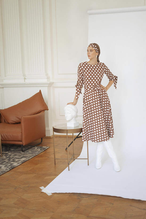 Беспроигрышные платья и костюмы нюдовых оттенков идеально сочетаются с тренчем в тон, который можно носить и самостоятельно на голое тело. Монохромные образы как никогда актуальны: полностью в красный, синий и зеленый одевали моделей Marni, MSGM и Chanel. Однако главное украшение коллекции All We Need — светло-коричневое платье миди в крупный горох. Оно дополнено повязкой на голову с таким же принтом — отличное решение для тех, кому наряжаться в клетку с ног до головы уже надоело. Носите его с любимым пальто, а лучше сразу возьмите тренч цвета хаки на широком ремне.