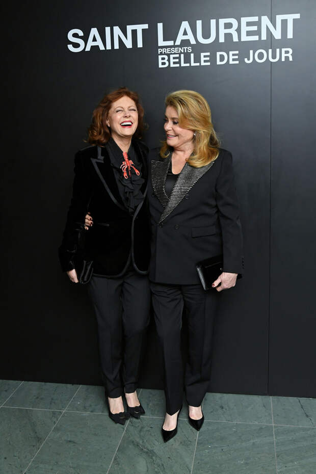 Впоследствии Ив Сен-Лоран близко дружил с актрисой и звездой фильма Катрин Денев. Значительную часть ее гардероба составляли наряды бренда. А вчера она стала почетным гостем вечеринки.Мероприятие также посетили актрисы Сьюзан Сарандон и Хлое Севиньи. Первая, как и Денев, предпочла в этот вечер черный приталенный костюм, вторая — мини-платье с вышивкой в виде звезд.