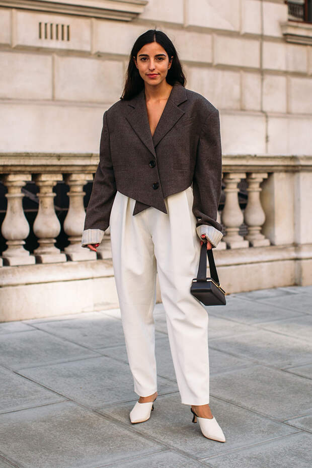 На замену огромным мужским пиджакам, в которых последние несколько сезонов утопают звезды стритстайла, пришли укороченные жакеты. Длина до талии вместе с широкими плечами и обязательно в комплекте с брюками-бананами с высокой посадкой создадут силуэт "песочные часы". Мы собрали 11 вариантов от самых нарядных с отделкой из бисера Area до базовых на каждый день Acne Studios.