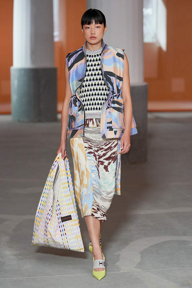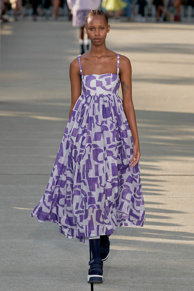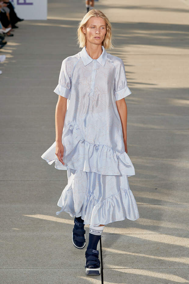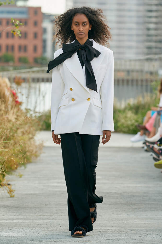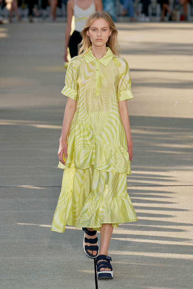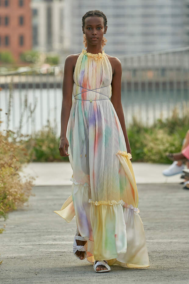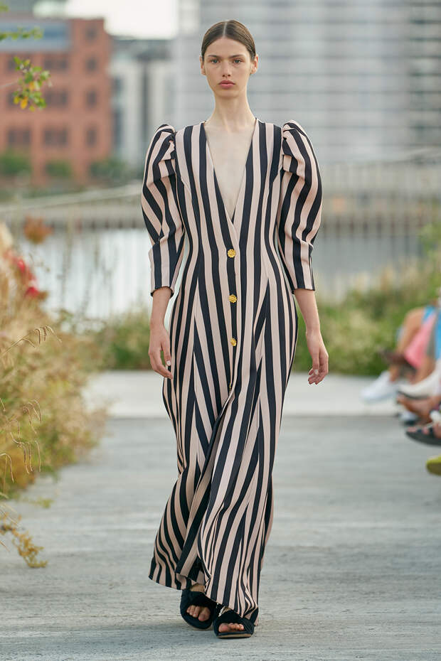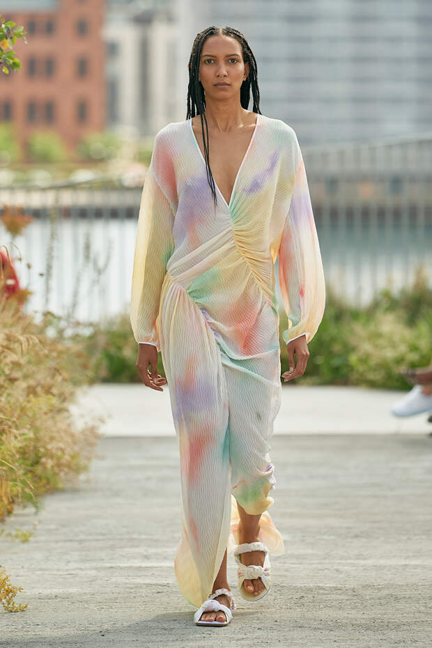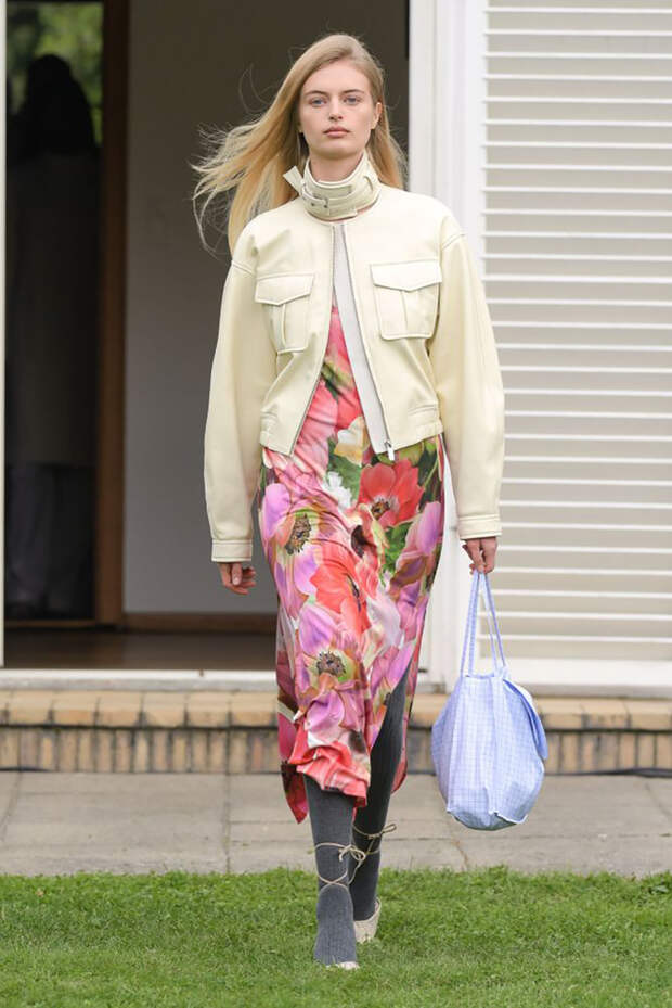 Для выпускница легендарной лондонский школы Central Saint Martins Стин Гойя основным инструментом в работе всегда были принты — яркие, экспрессивные, подчас немного безумные. В ее новой коллекции они снова занимают важное место — но на этот раз по смелости с ними могут посоревноваться и силуэты. Коктейльные платья с драпировками и рукавами-буфами, приталенные джинсовки, скроенные на манер легендарных «диоровских» жакетов bar и асимметричные плиссированные юбки наверняка понравятся клиенткам Stine Goya (в числе самых преданных — Хейли Бибер) не меньше, чем более привычные вещи из их репертуара, вроде пастельных «чайных» платьев.