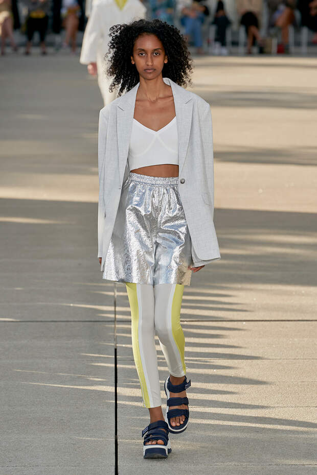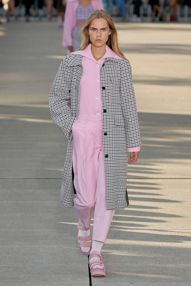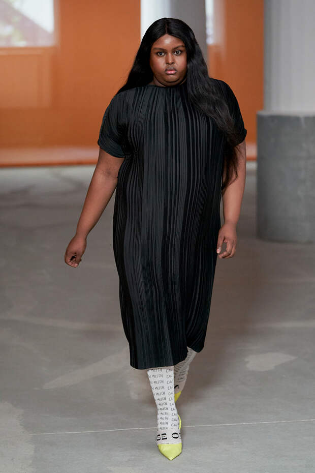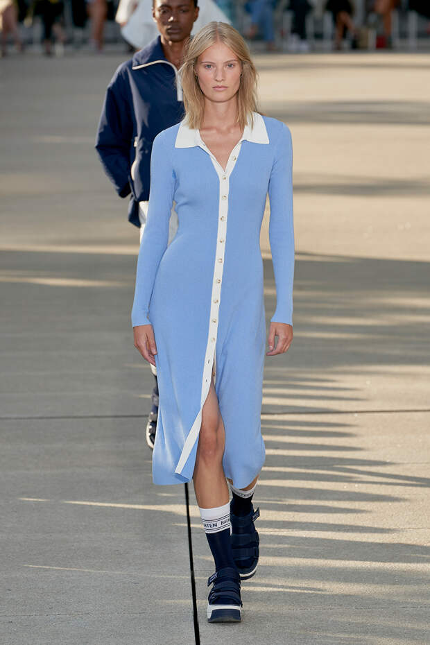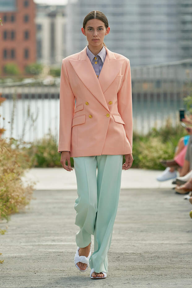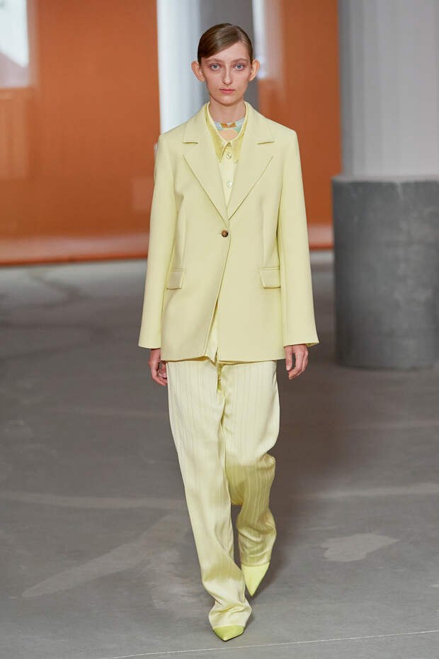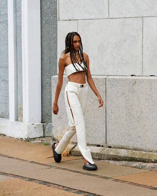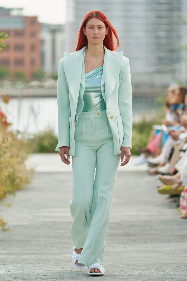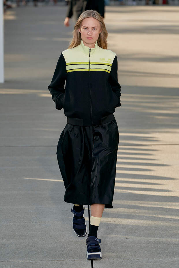 Ganni уже с трудом можно назвать локальным брендом: на его счету два успешных сотрудничества с Levi's, работа с лучшими мультибрендами по всему миру и суперзвезды вроде Рианны и Бейонсе в рядах верных поклонниц. И, конечно, очень узнаваемый почерк: их блузки и платья с отложными воротничками трудно с чем-то спутать. При этом в новой коллекции нет ни этих самых воротничков, ни другого важного кода марки — леопардового принта. По словам креативного директора Дитте Реффстру, она вдохновилась тем, как ее клиентки развлекались неожиданными сочетаниями вещей, скучая во время локдауна. Поэтому в коллекции появились яркие «треники» с подвернутыми манжетами, коктейльные платья, надетые поверх рубашек (и с «мужским» жакетом сверху!) и, конечно, главная постпандемийная обувь, которую теперь носят со всем и под все: клоги.