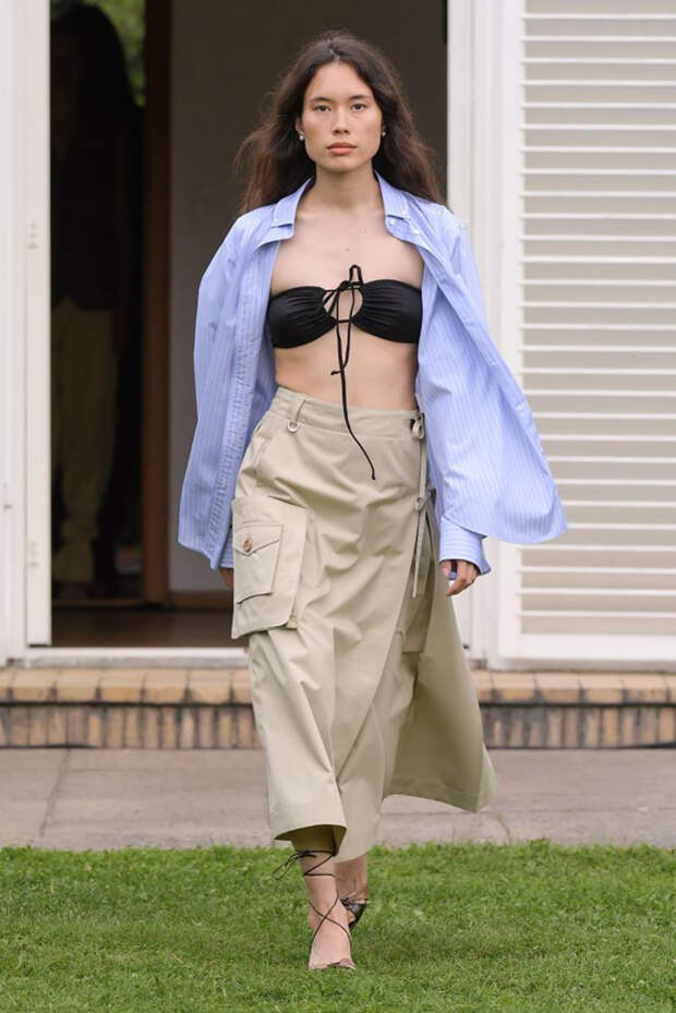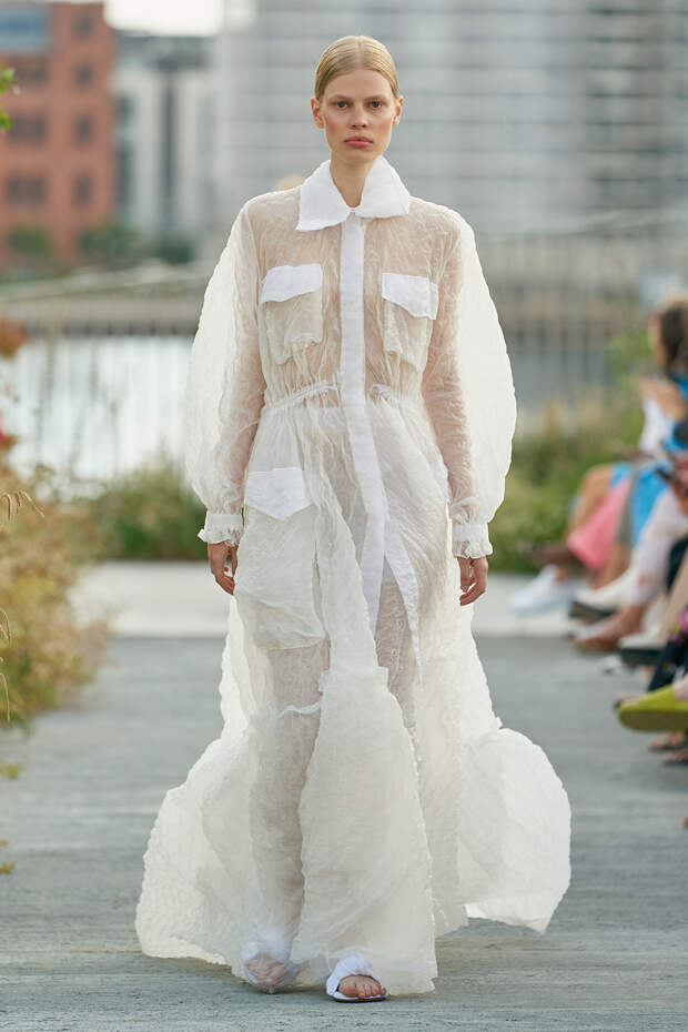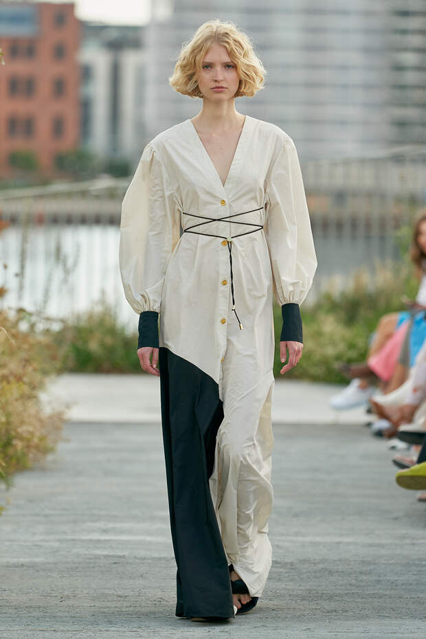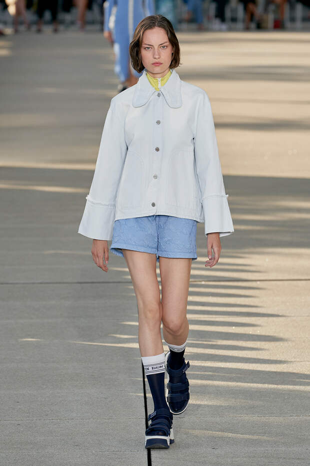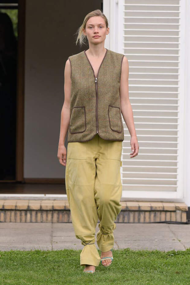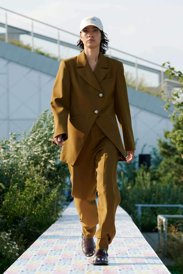 Brøgger позиционируют себя как лондонский бренд — но его «исторической родиной» по праву можно считать Данию, где родилась, выросла и отучилась на дизайнера одежды основательница марки Джули Бреггер. Здесь же, на Неделе моды в Копенгагене, она с 2019 года показывает свои коллекции. Ее шоу весна-лето 2022 прошло под открытым небом — а описание локации весьма напоминает собирательный образ показов Jacquemus: река, цветы и колосья пшеницы стали фоном для подиума. Правда, сама коллекция на работы французского коллеги Бреггер не была похожа: в ней строгие, даже маскулинные линии брючных костюмов интересно сочетались с расслабленными и воздушными платьями оверсайз-силуэтов, а классические черно-белые паттерны — с нежными пастельными цветами.