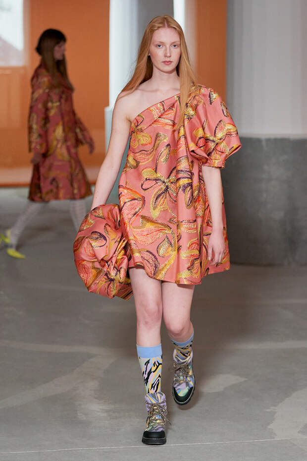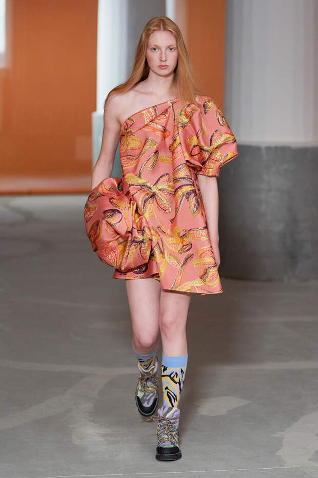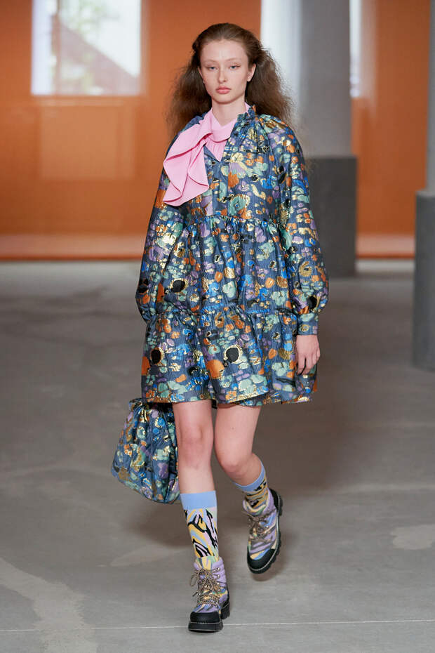 И если раньше датская столица была в основном бесперебойным «поставщиком» интеллигентных минималистичных марок, то сейчас состав ее участников стал куда разнообразнее и ярче (во всех смыслах). Рассказываем о 7 самых ярких, зрелищных и запоминающихся показах Недели моды в Копенгагене сезона весна-лето 2022 — от фэшн-фильма под проливным дождем до шоу на крыше мусоросжигательного завода.Ganni