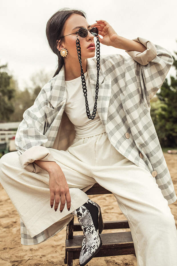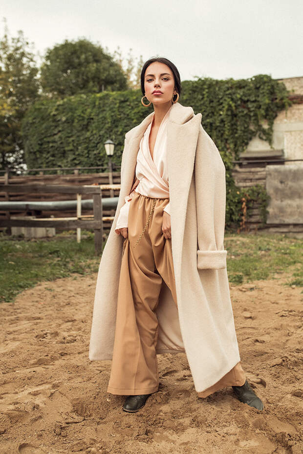 Для комфортного передвижения подойдут оверсайз-пиджаки, водолазки, рубахи, брюки-кюлоты и палаццо. Они выполнены в фирменном расслабленном стиле Marina Mak, но при этом легко впишутся в любой базовый гардероб. Вечером классическую базу можно сменить на что-то совсем невесомое и нежное, например на коктейльные платья в пол, с открытой спиной, пайетками и другие — все приятных светлых оттенков.