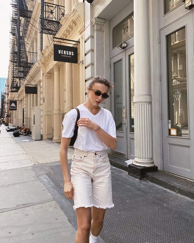 Ну а главный хит этого лета - джинсовые бермуды, то есть шорты чуть выше колена. Чем расслабленней образ, в котором им досталась главная роль, тем лучше - берем пример с блогера Мари Лист ли Камиль Шарьер. Изюминкой может стать обувь. Попробуйте вместо привычных кроссовок или массивных сандалий надеть их с казаками.