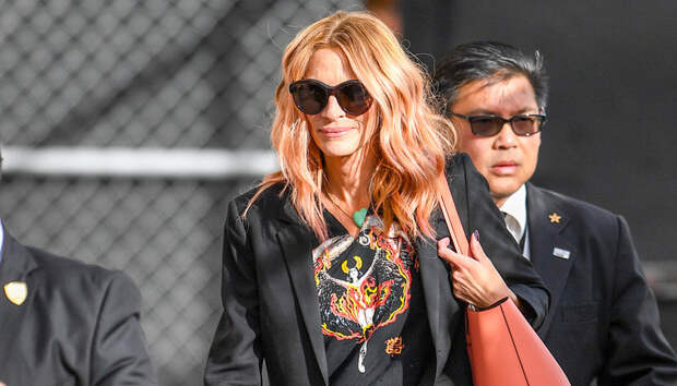 Пока же 51-летняя актриса стала гостьей шоу Джимми Киммела, к которому она приехала в черных кожаных скинни, хлопковой футболке с ярким принтом и легком жакете.Жаль, что не снимают продолжение "Красотки" — рыжеволосая Вивиан в наше время выглядела бы просто сногсшибательно!