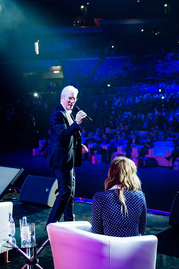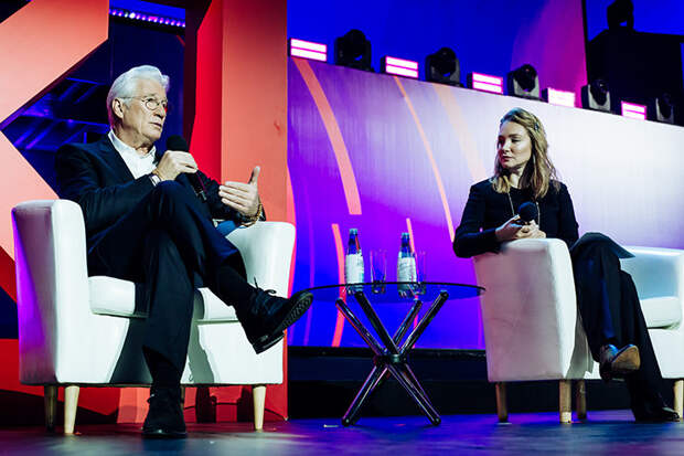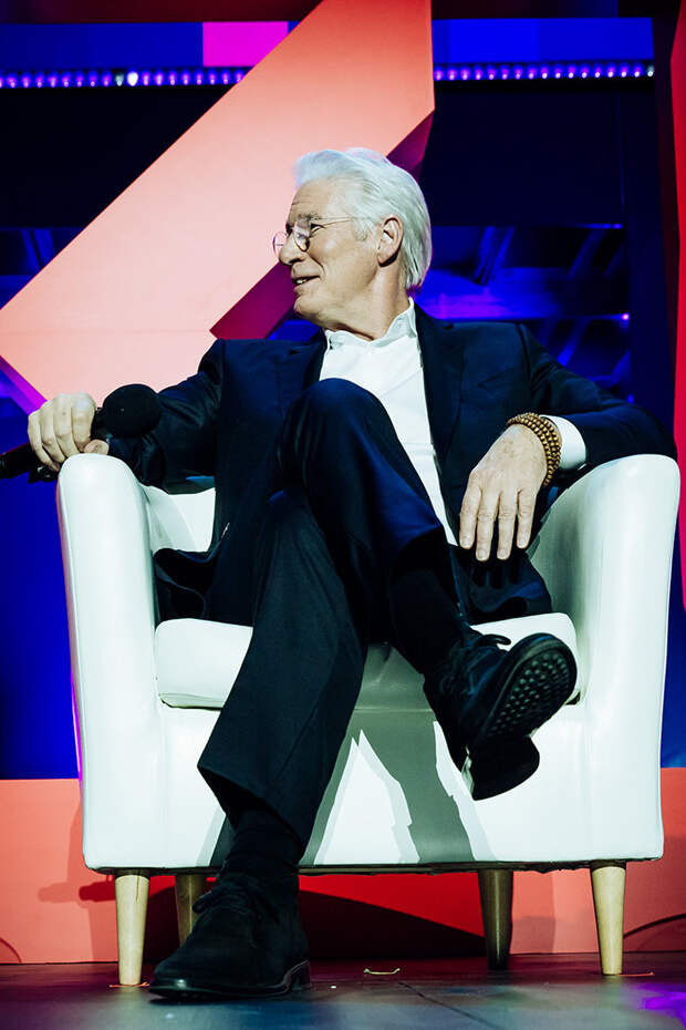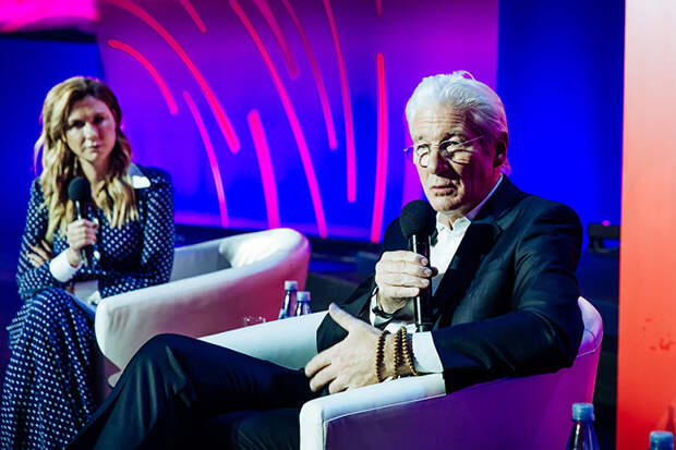 В Москве проходит Synergy Global Forum, в котором принимают участие многие известные личности. Особым гостем мероприятия стал Ричард Гир: голливудский актер прибыл в Россию специально для того, чтобы поведать о своем непростом, но очень ярком карьерном пути. Рассказ получился захватывающим и очень интересным в том числе благодаря интервьюерам: увлекательный диалог с обладателем «Золотого глобуса» вели главный редактор Harper's Bazaar Даша Веледеева и главный редактор Cosmopolitan Алена Пенева.