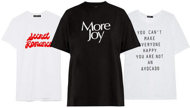 К футболкам с надписями многие относятся скептически: мол, пишут на них одни банальности, и носить такое - моветон. Мы же не согласны. И вообще считаем, что к одежде не стоит относиться так серьезно - если что-то нравится, незачем оглядываться на мнение других. Пусть ваша футболка сообщает миру, что вы влюблены, что вы лучше всех, что вы суровы и с вами лучше не шутить или, наоборот, любите жизнь и все в ней - а тем, кто имеет что-то против, лучше следить за самими собой.